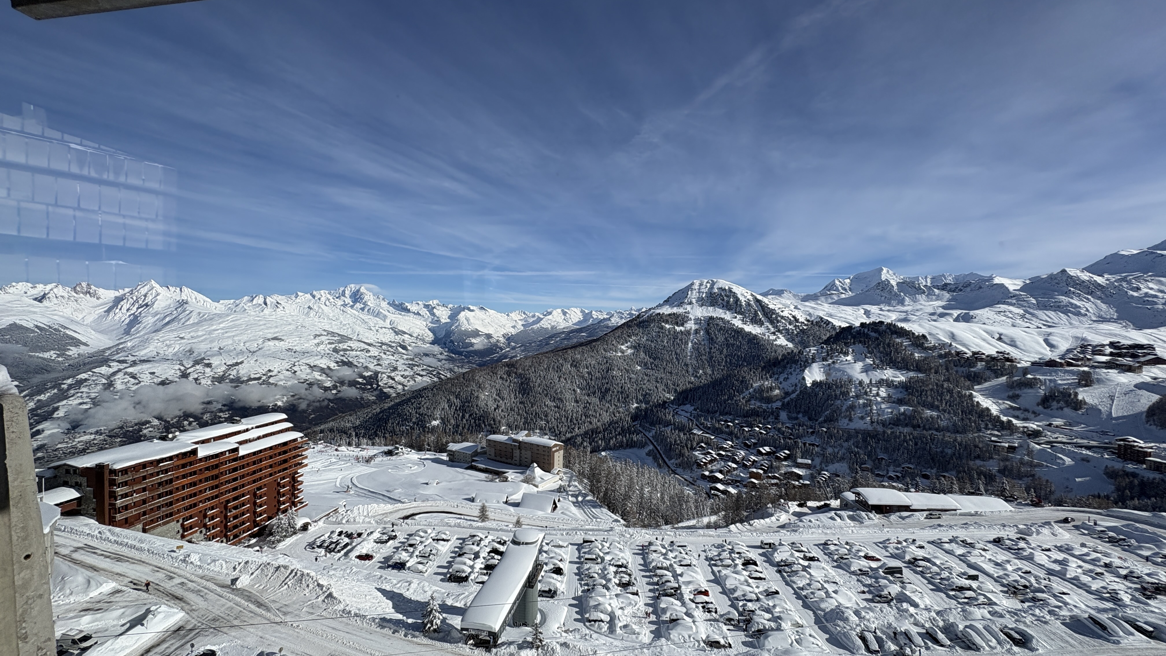 Immeuble situé au pied des pistes avec un départ direct vers 4 directions et stations différentes qui bénéficie d'une Galerie Commerciale intérieure avec tous ses commerces, loisirs et services à bord et qui est également reliée à la station de Plagne Centre par le Télémétro (6mns).