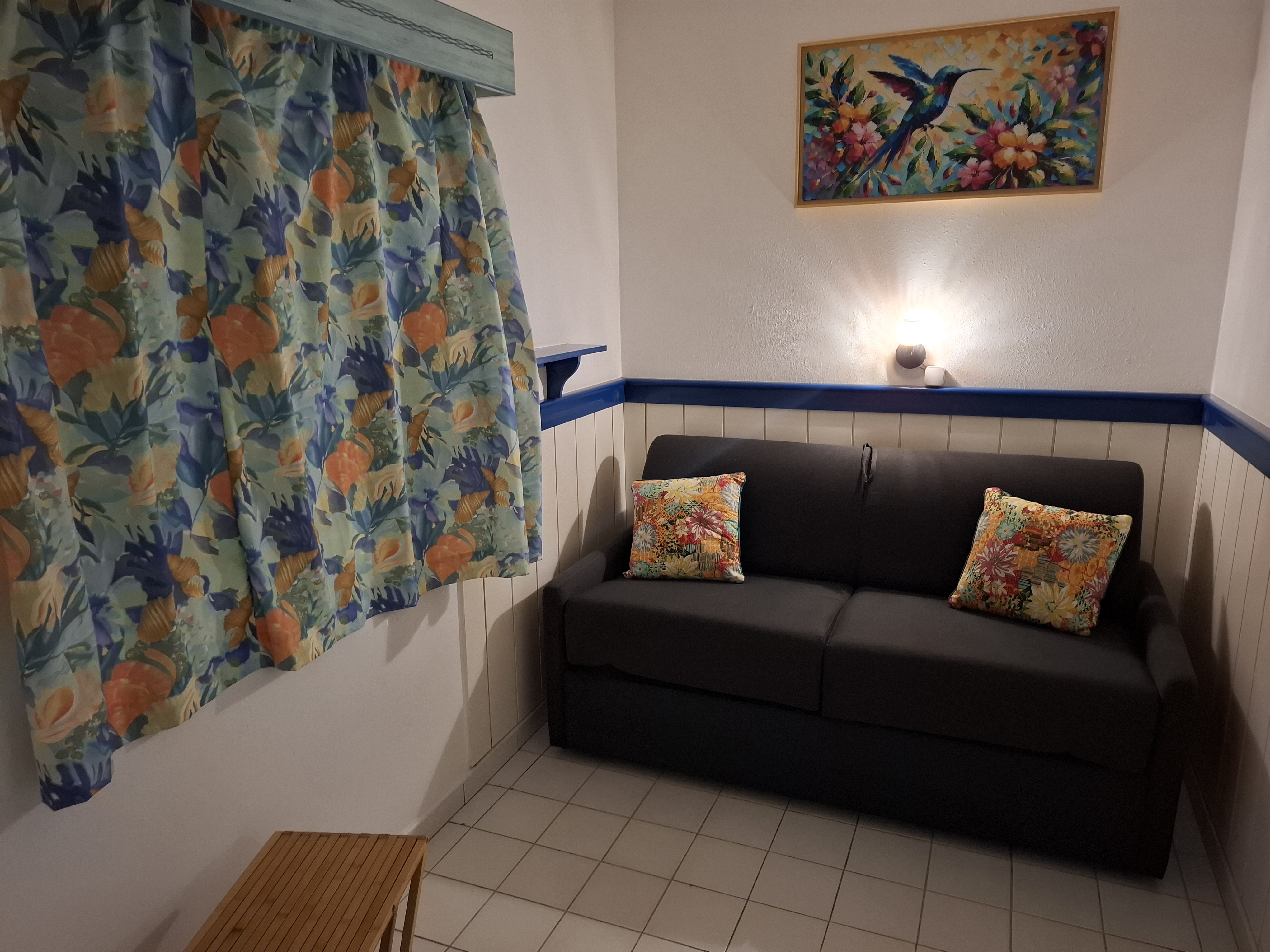 1 lit double dans le séjour - 2 lits 1 place dans l'espace nuit
