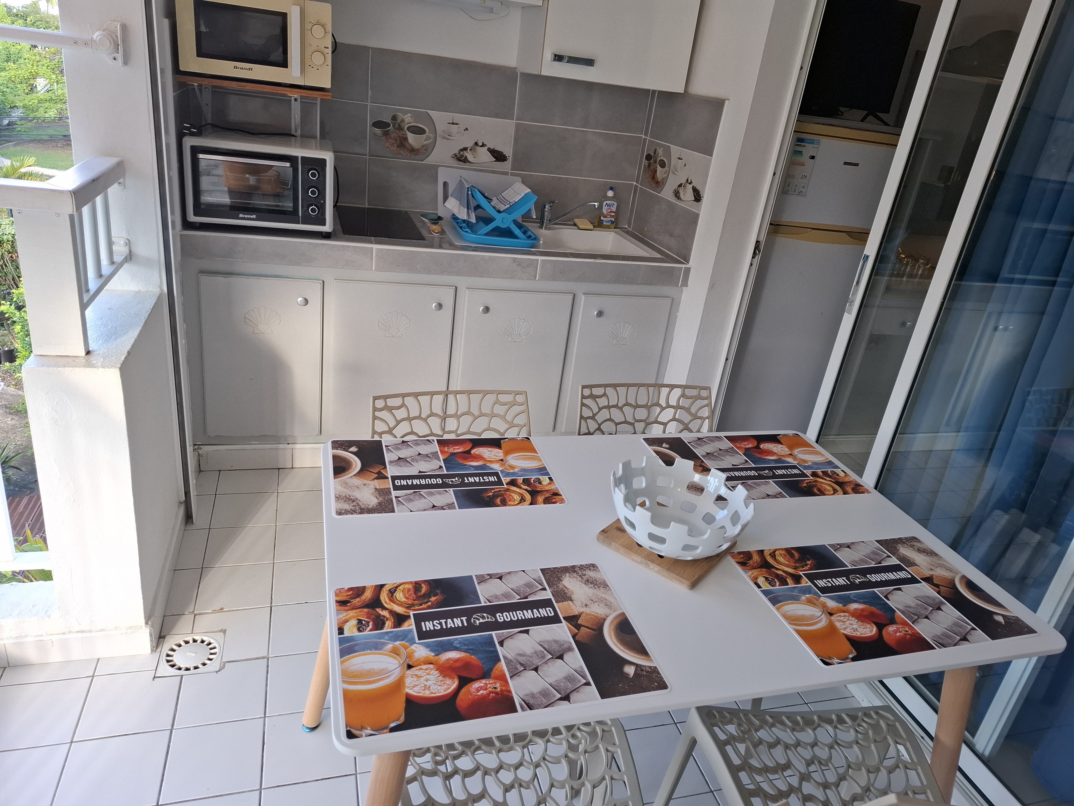 Ustensiles et vaisselle ( Plaque de cuisson 2 feux - mini four four - micro ondes - cafetière électrique - bouilloire électrique - grille pain