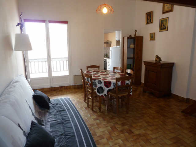 Une entrée, un séjour salle à manger donnant sur le balcon, une mezzanine ouverte donnant sur le séjour (lit en 160x200 et 1 lit parapluie), une cuisine équipée, 2 chambres (1 avec 2 lits en 90 et 1 avec 2 lits superposés en 90), une salle d'eau avec douche, wc séparé.