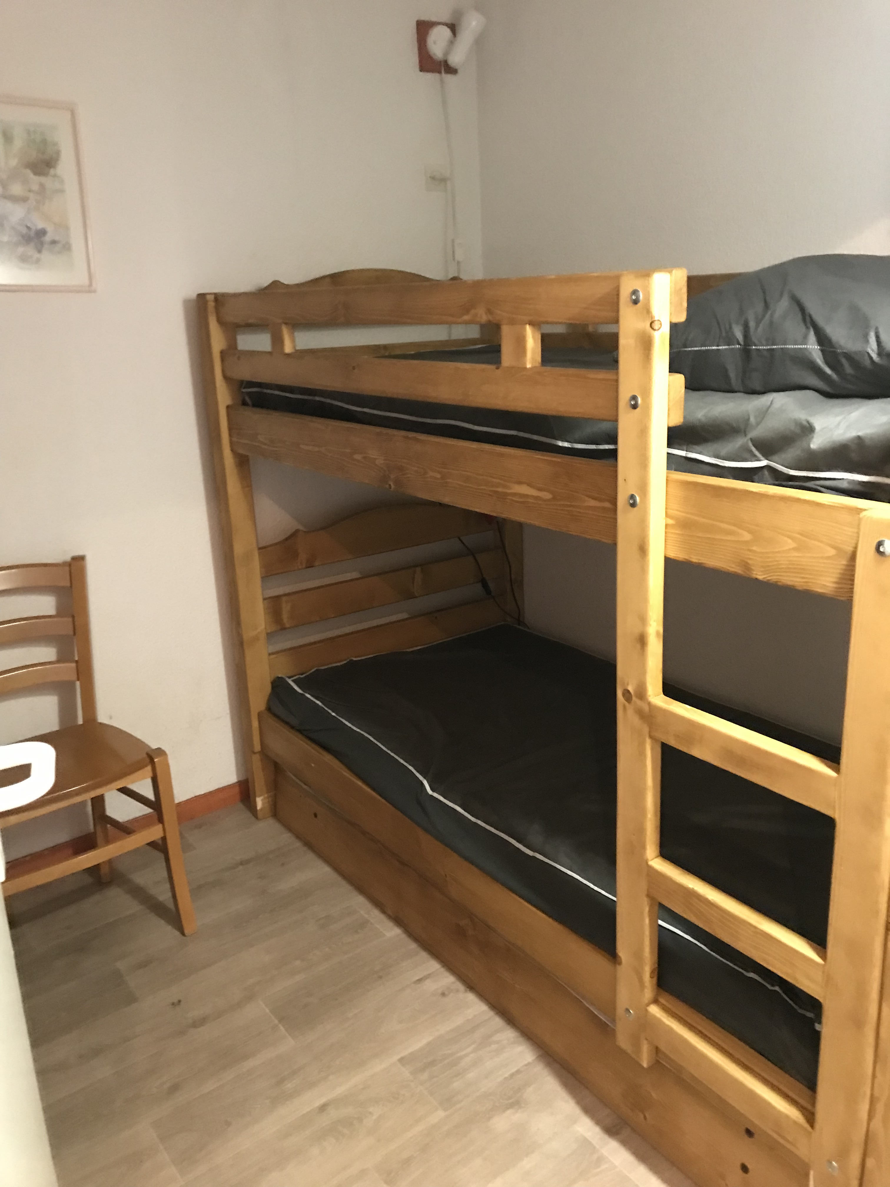 Appartement de 28 m2, 4/5 couchages, situé secteur des Bergers, proche des pistes et centre commercial , 2 pièces avec 1 chambre équipée de lits superposés+ 1 lit d'appoint, 1 salle de bain, 1 wc, 1 séjour avec lit banquette , table à manger, 1 tv, coin cuisine avec cafetière, micro-onde, petit réfrigérateur, une plaque 2 feux, 1 balcon vue montagne et casier à ski.