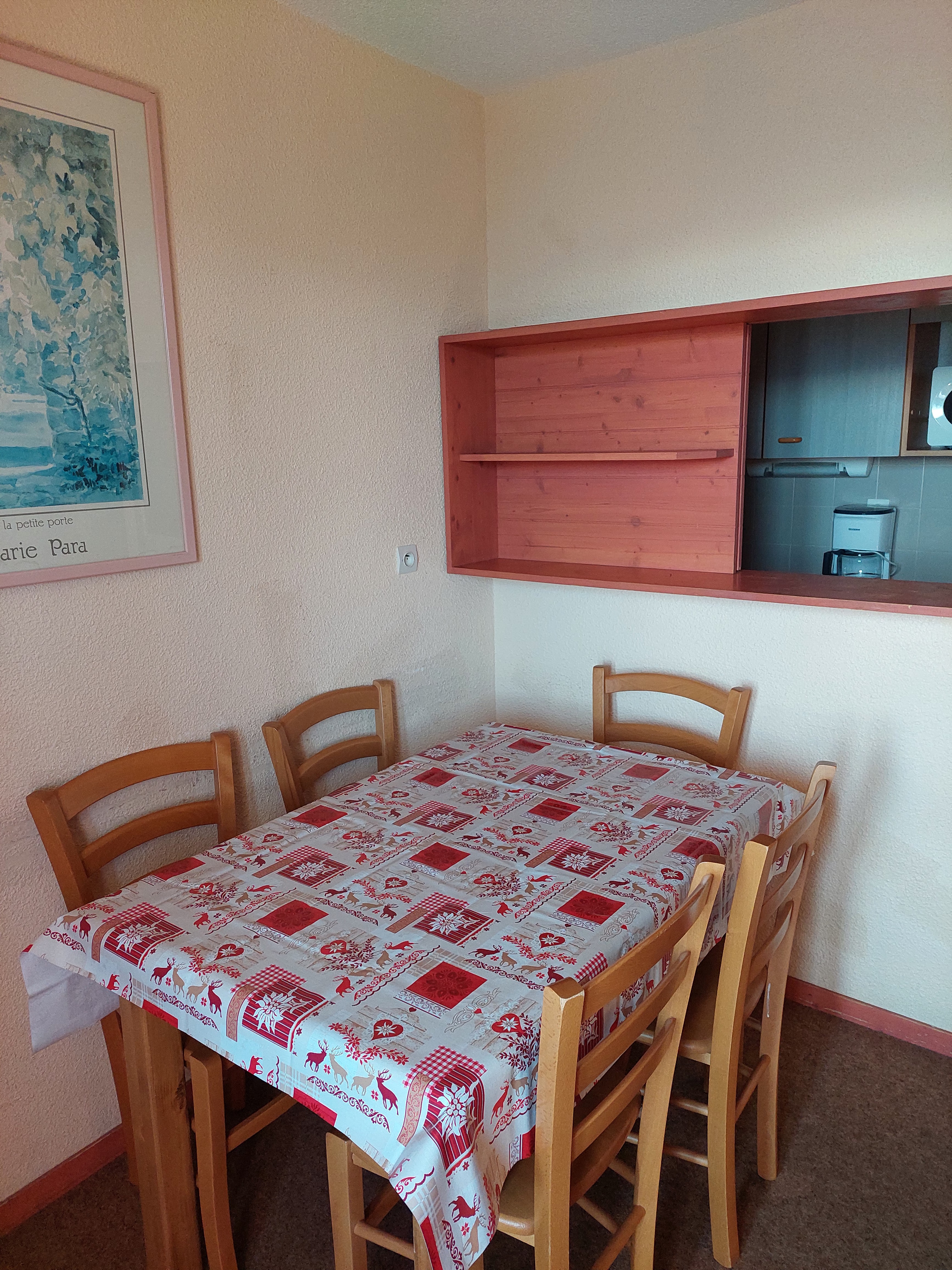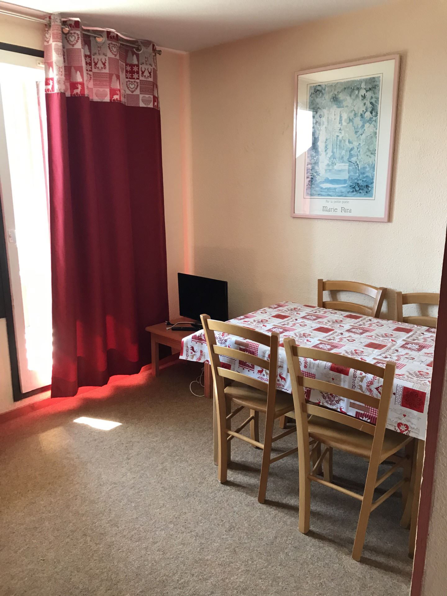Appartement de 28 m2, 4/5 couchages, situé secteur des Bergers, proche des pistes et centre commercial , 2 pièces avec 1 chambre équipée de lits superposés+ 1 lit d'appoint, 1 salle de bain, 1 wc, 1 séjour avec lit banquette , table à manger, 1 tv, coin cuisine avec cafetière, micro-onde, petit réfrigérateur, une plaque 2 feux, 1 balcon vue montagne et casier à ski.