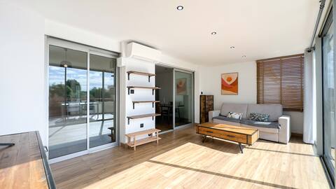 Ce charmant T2 rénové situé à Villeneuve-Loubet offre un bel aperçu mer depuis certains points, bénéficie de la climatisation pour un confort optimal, et dispose d’un parking privatif sur place un atout rare dans cette zone côtière. Son intérieur refait à neuf, ses finitions soignées et son positionnement entre mer et nature en font une excellente option pour les voyageurs qui souhaitent découvrir la Côte d’Azur depuis un lieu calme mais bien situé.