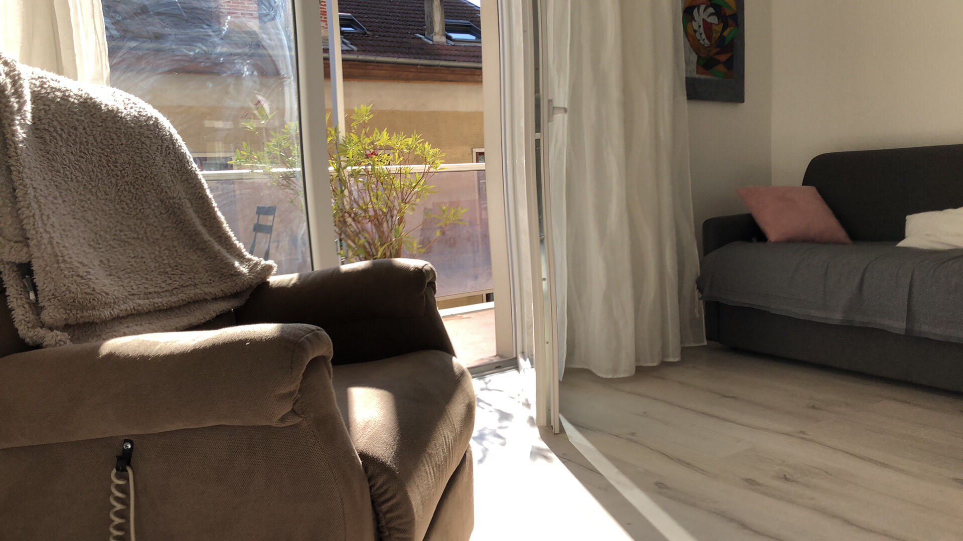 Au 4ème étage d'une résidence belle résidence sécurisée située en plein centre ville avec ascenseur (notez qu'il y a 10 marches entre la rue et l'accès à l'ascenseur), le lieu est idéal : à 150 m de la rue de Genève (rue très commerçante) et à 500 m de la Gare, tout est fait pour un séjour des plus agréables.