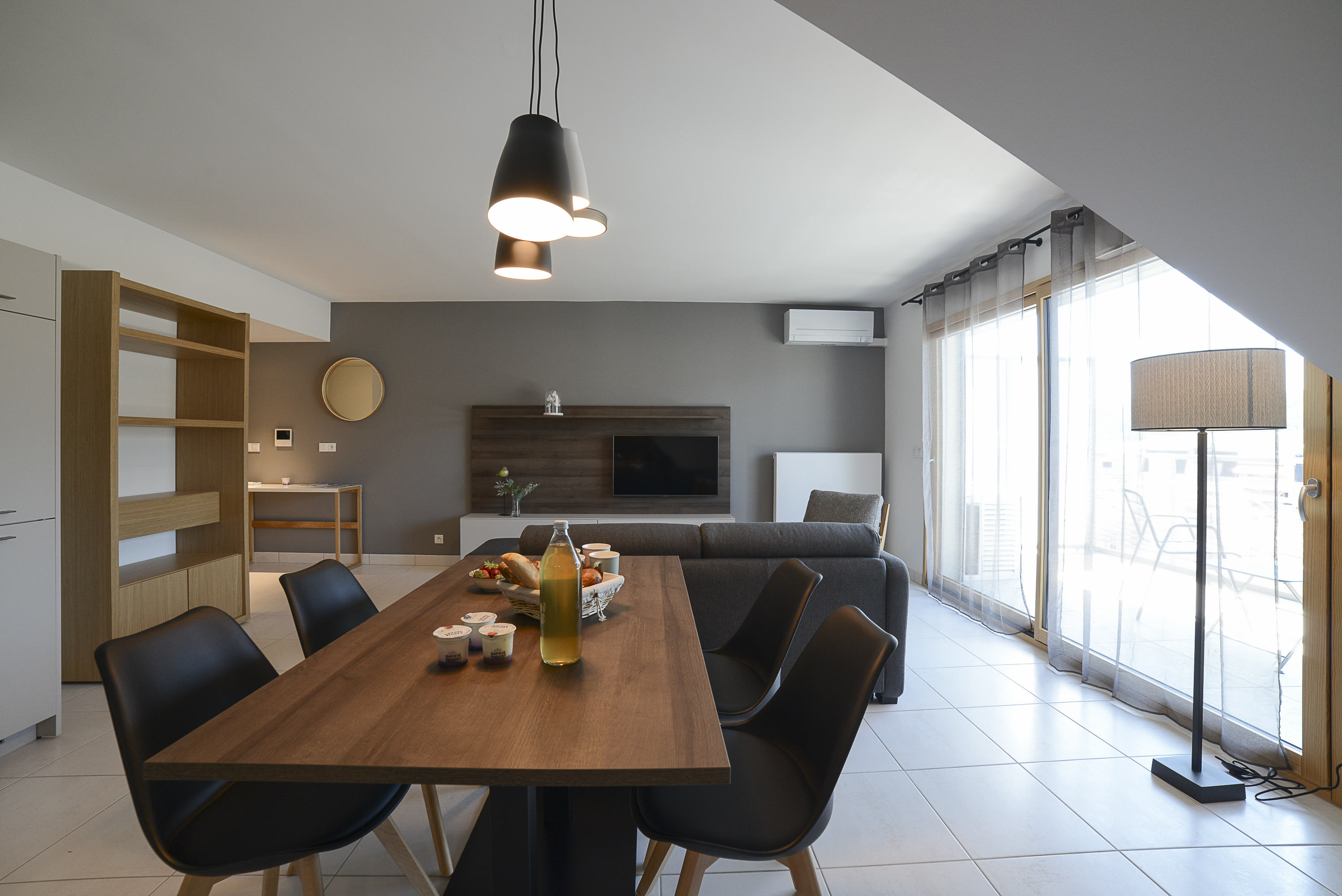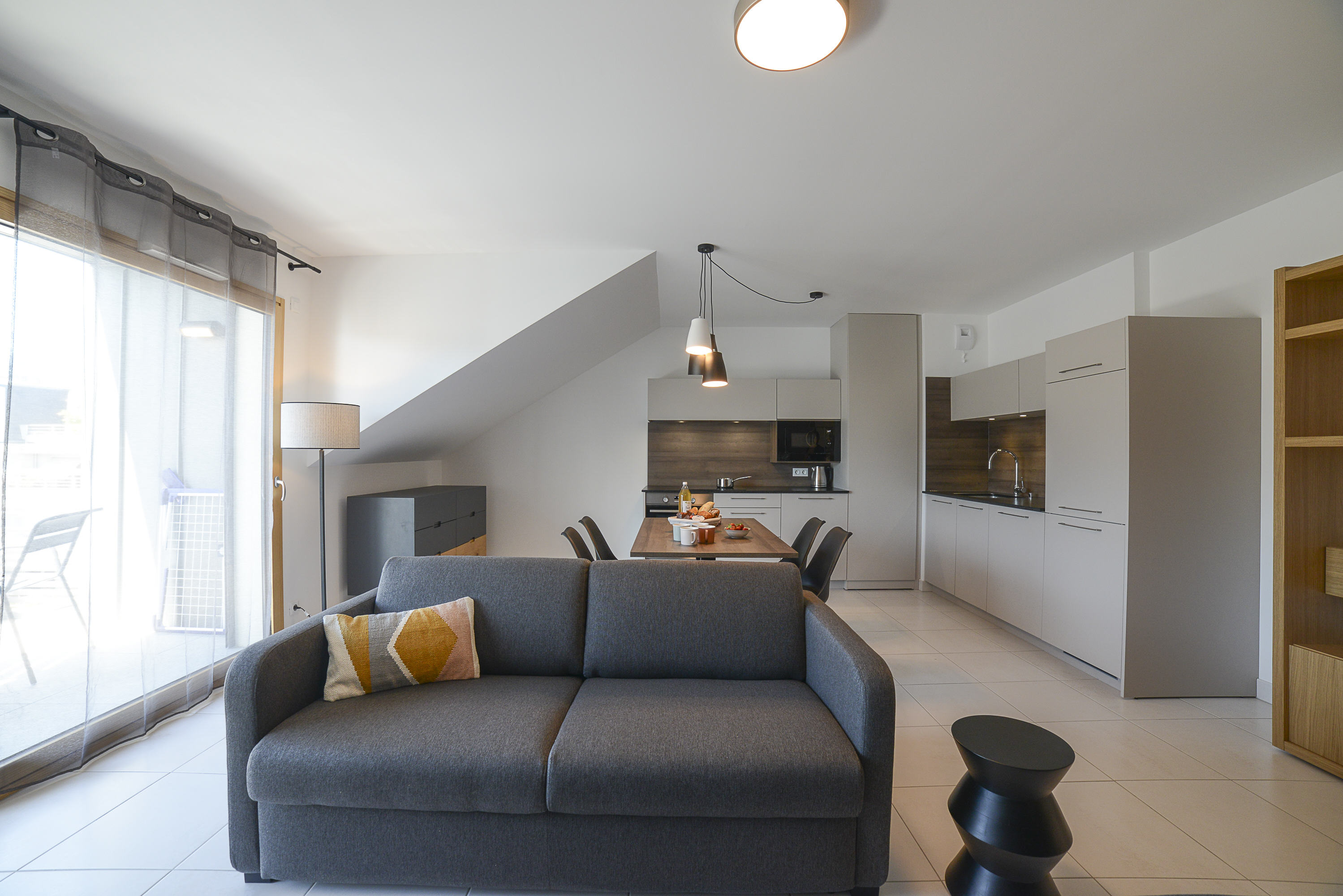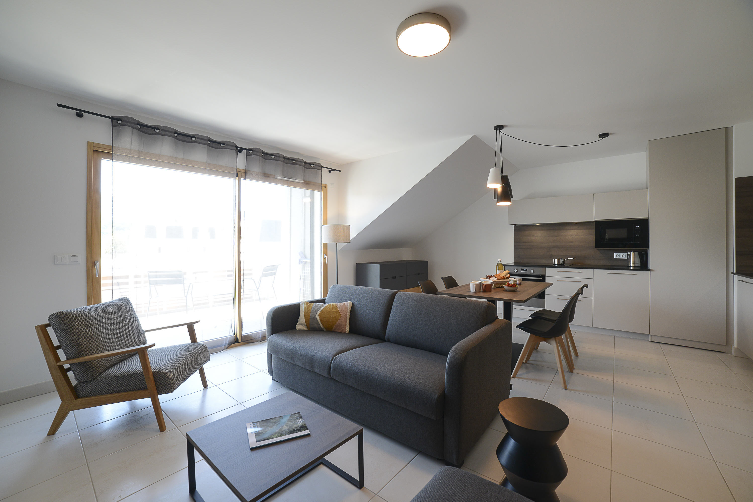 L'appartement est classé 4****, entièrement neuf avec terrasse orientée Ouest pour profiter d'une vue dégagée sur la dent du Chat, dans résidence sécurisée avec ascenseur et garage. Belle luminosité par ses grandes baies vitrées.
