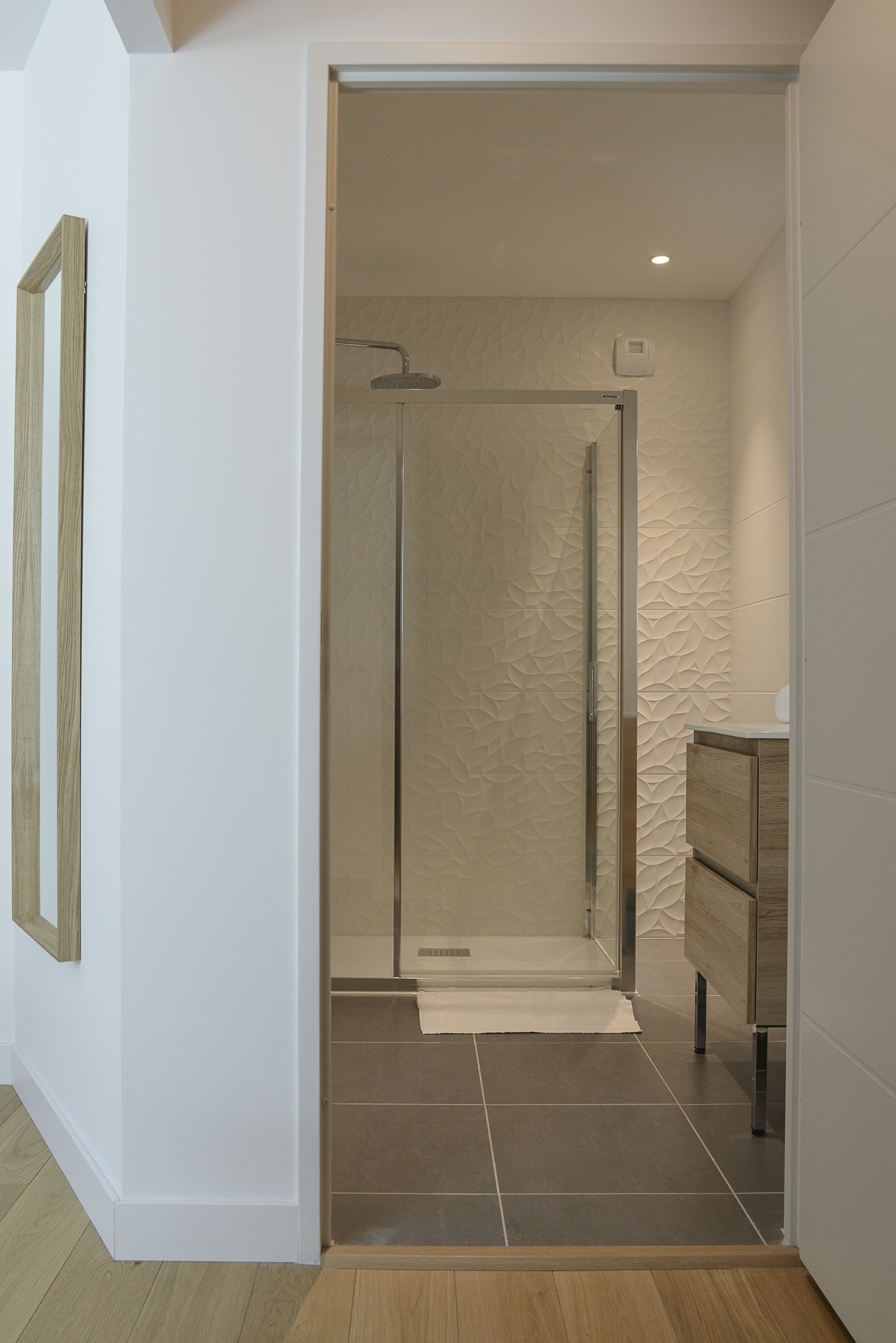 -SALLE D'EAU (Sol : carrelage / Murs : faïence et peinture) belle douche à l'italienne, lavabo grande vasque, sèche-cheveux, radiateur sèche-serviettes.