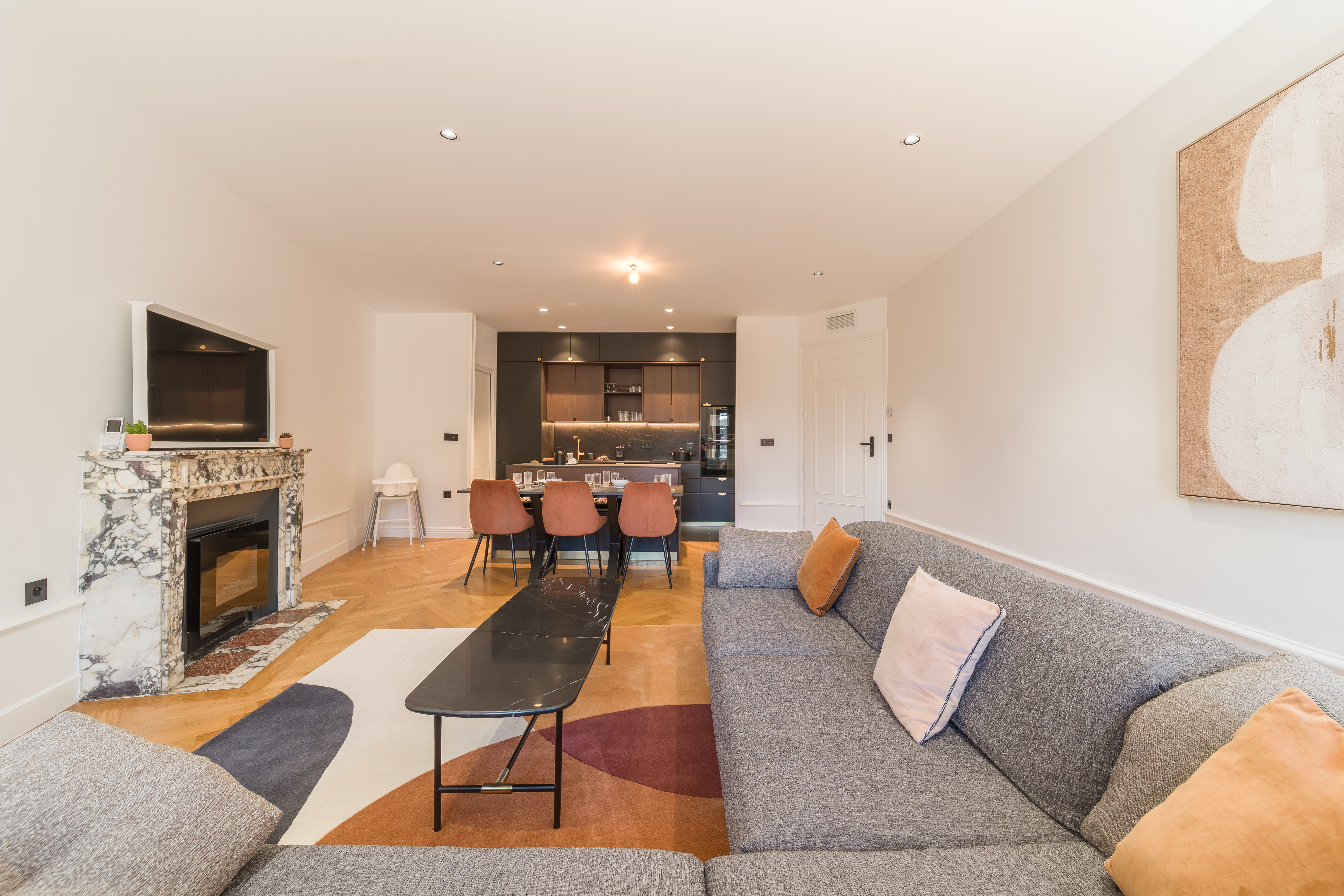 Au coeur de la Résidence Astoria, nous vous proposons un Type 3 d'env. 110 m², décoré avec raffinement et exposé plein Sud (place de l'Hôtel de Ville).