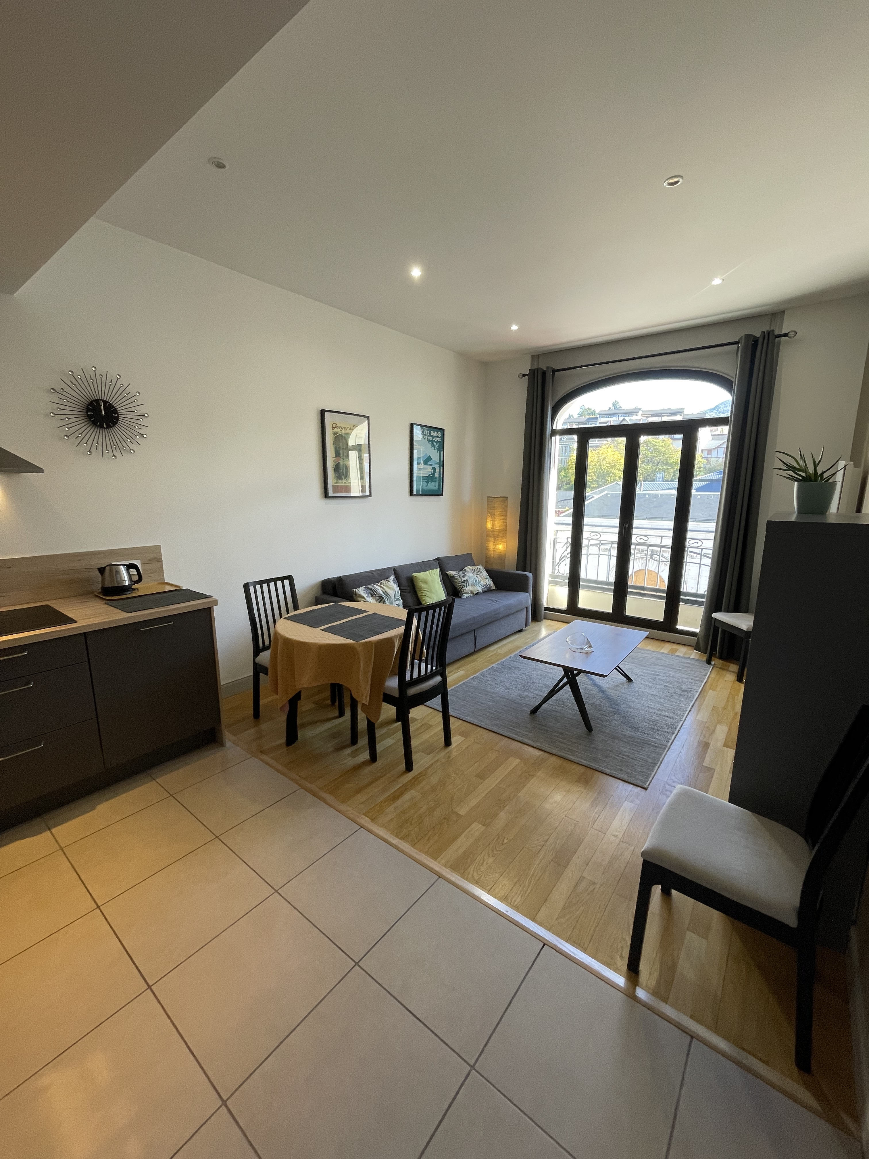 Au 3ème étage avec ascenseur de ce bel immeuble d'un style architectural Art Nouveau et bénéficiant d'une Vue imprenable sur la place des Thermes, le centre-ville et les montagnes, vous profiterez de sa situation idéale : 100m de l'arrêt de bus de l'office du tourisme et à 550m de la Gare SNCF.