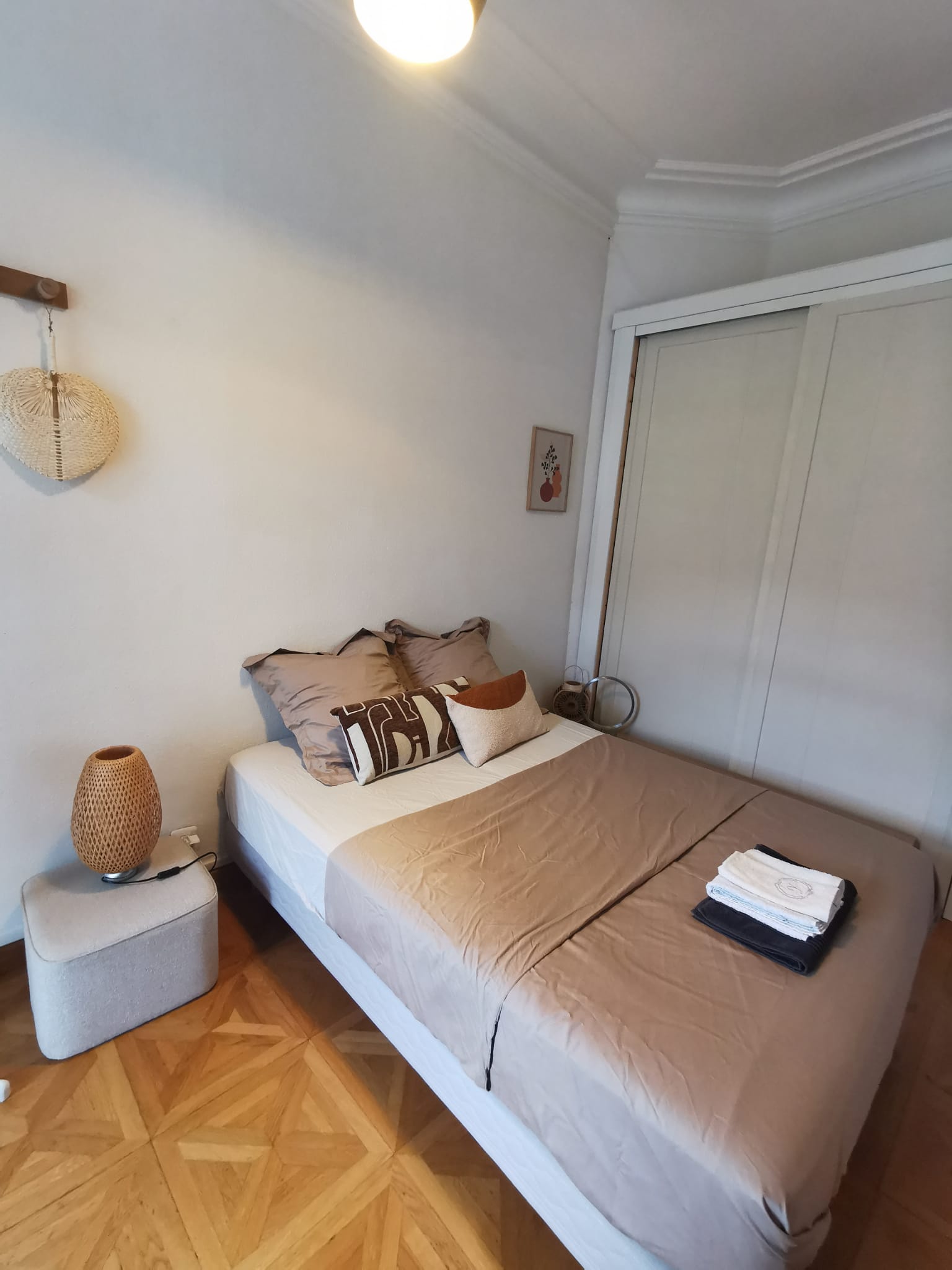 *coin nuit : lit x140 cm à mémoire de forme, TV, TV/TNT fixée au mur, placard mural penderie/étagères.