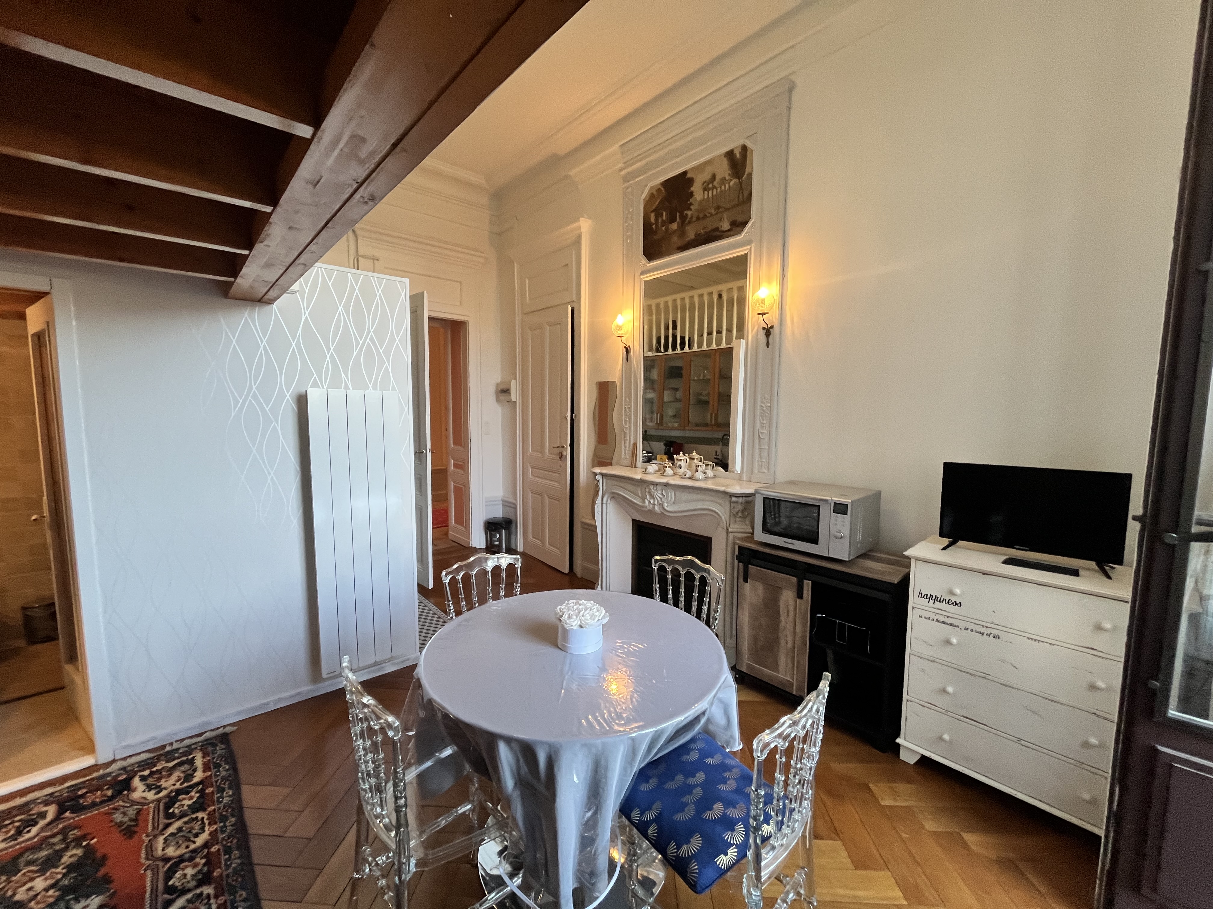 Vous apprécierez le charme de la hauteur sous plafond, l'ancienne cheminée et son espace aéré et lumineux.