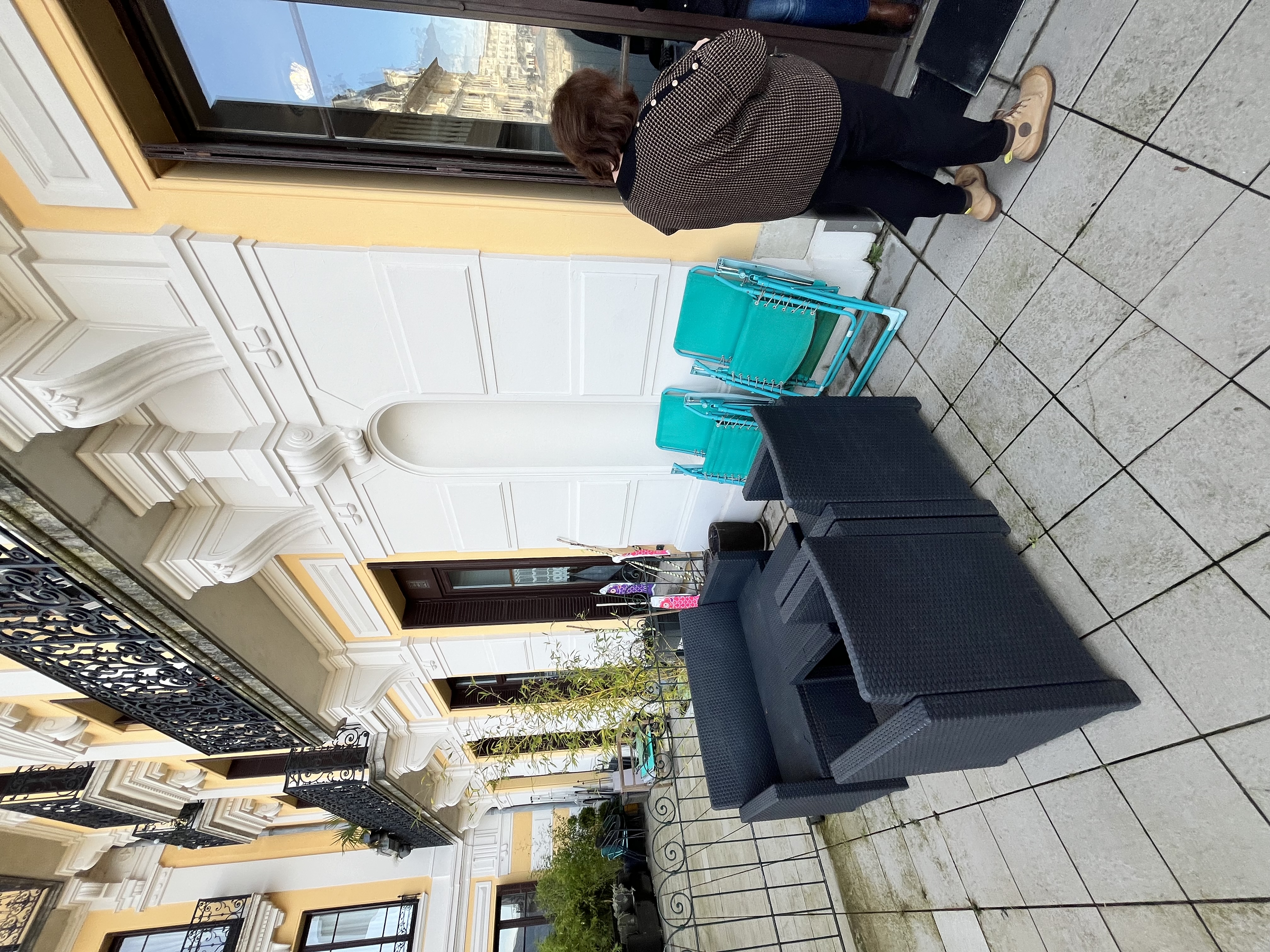 - TERRASSE (sol : dalles / murs : façade) salon de jardin.
