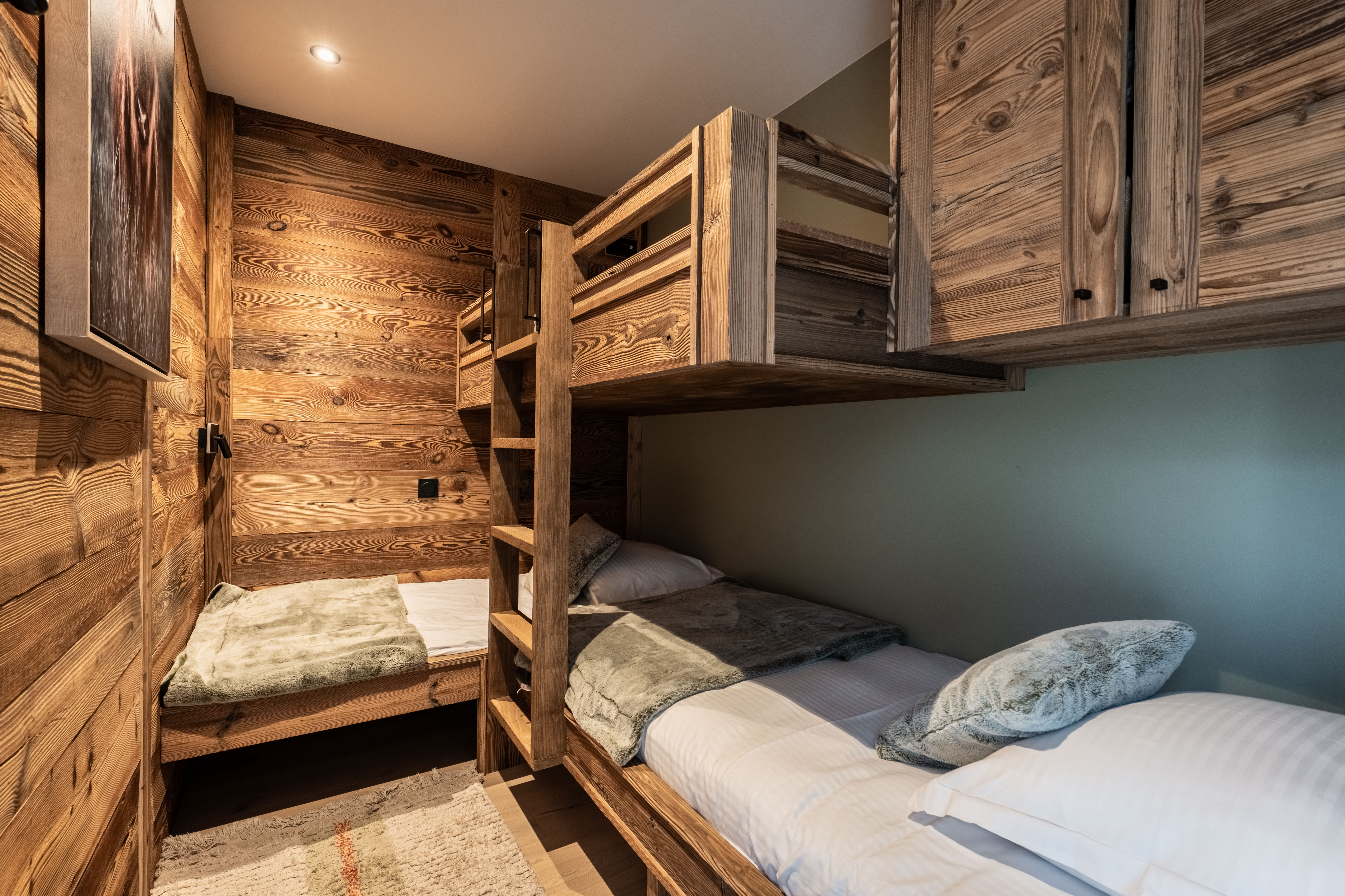 Une cabine « Coin Montagne » 3, avec 3 lits superposés de 90cm,