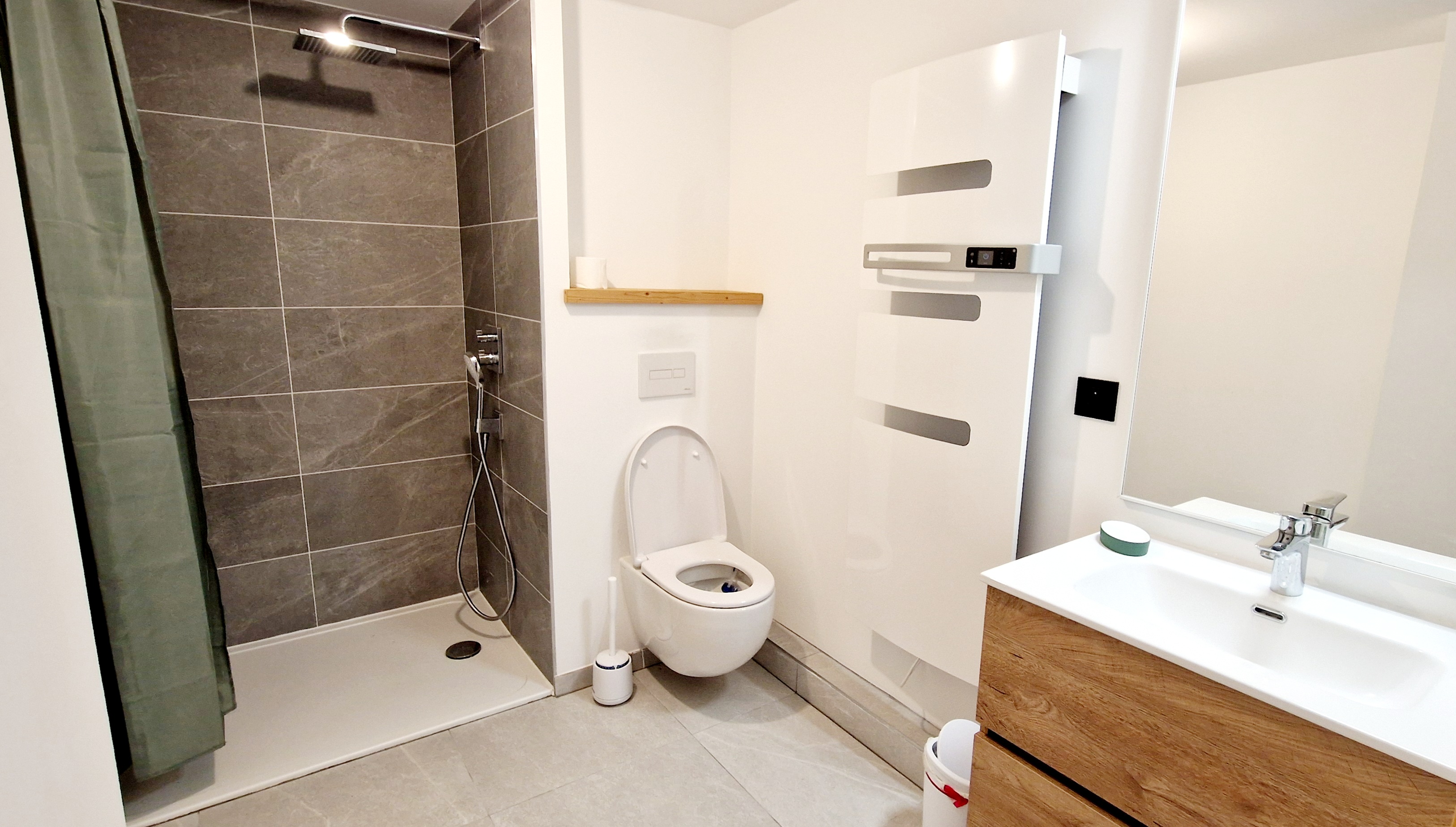 D'une surface de 57m2, cet appartement au premier étage bénéficie d'une exposition sud offrant une vue imprenable sur les montagnes environnantes. Il est équipé d'un garage souterrain, d'un ascenseur et d'un casier à ski pour faciliter le stockage de votre matériel.