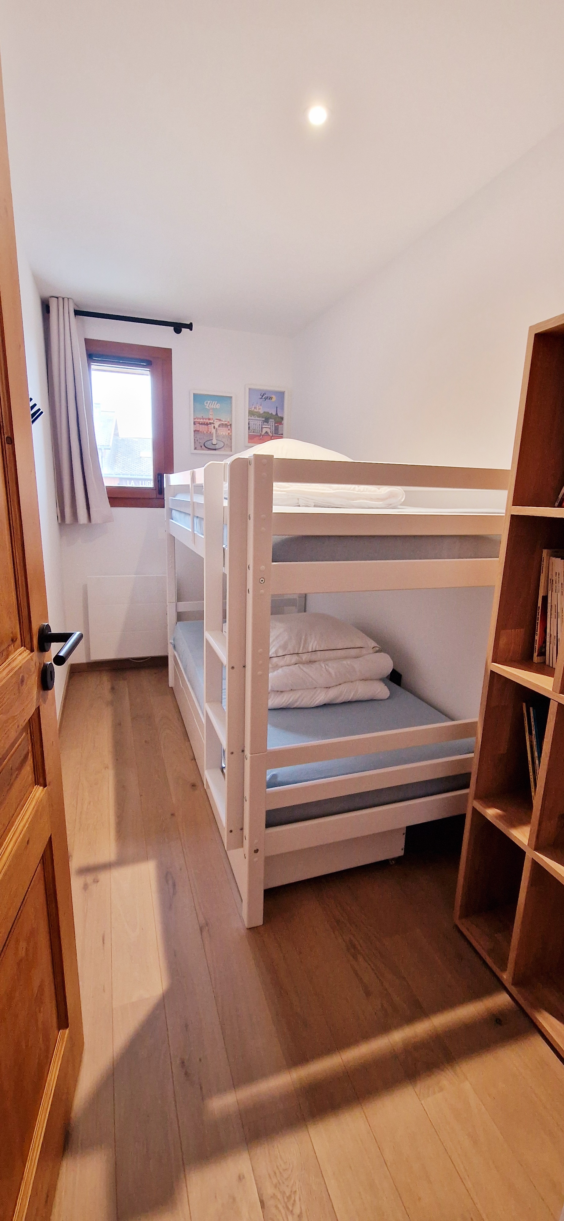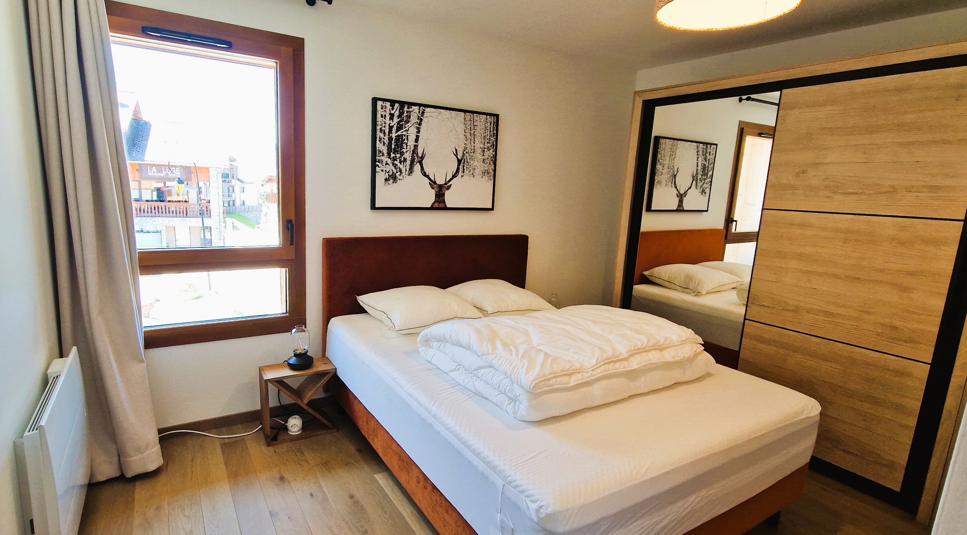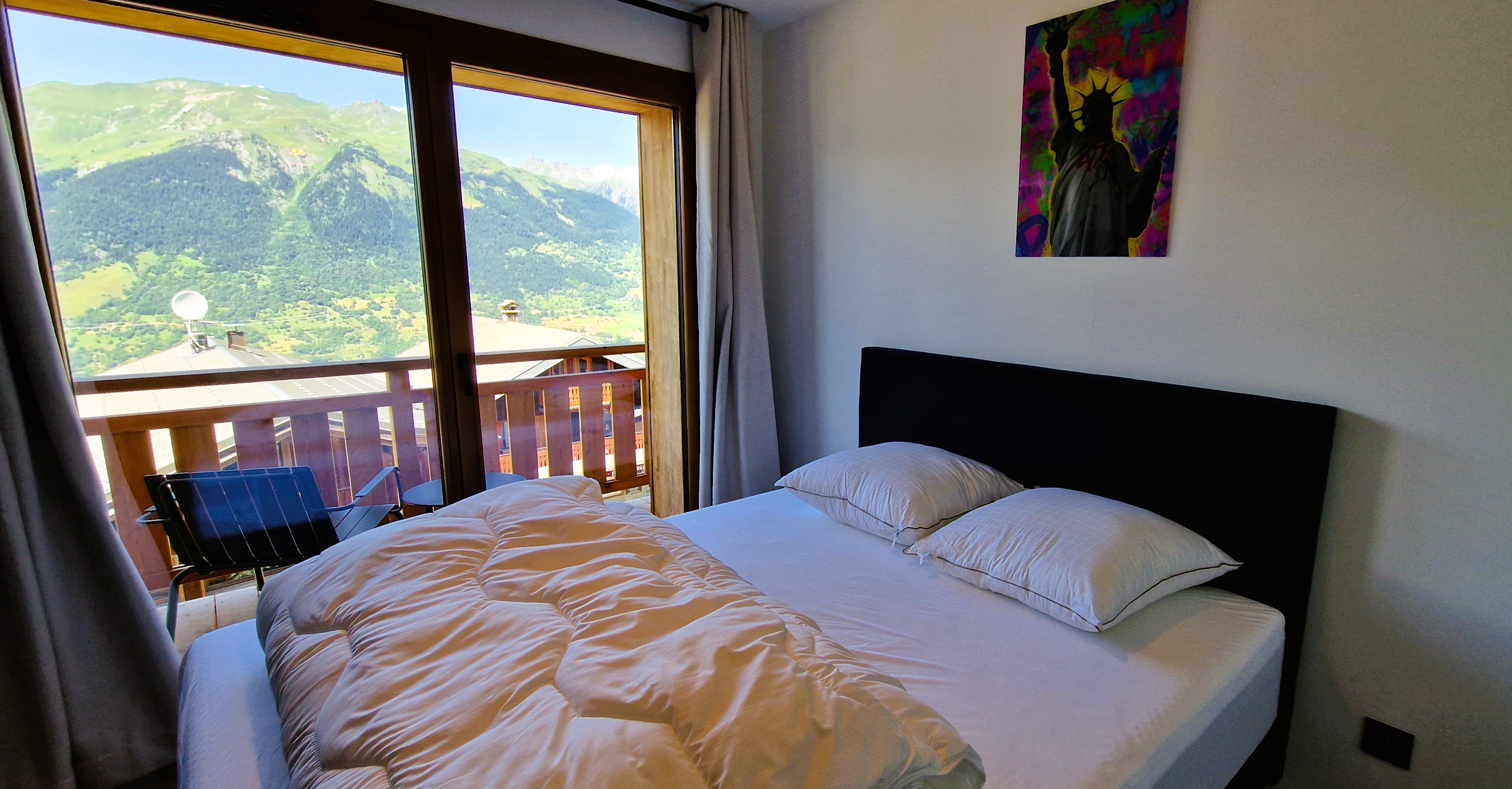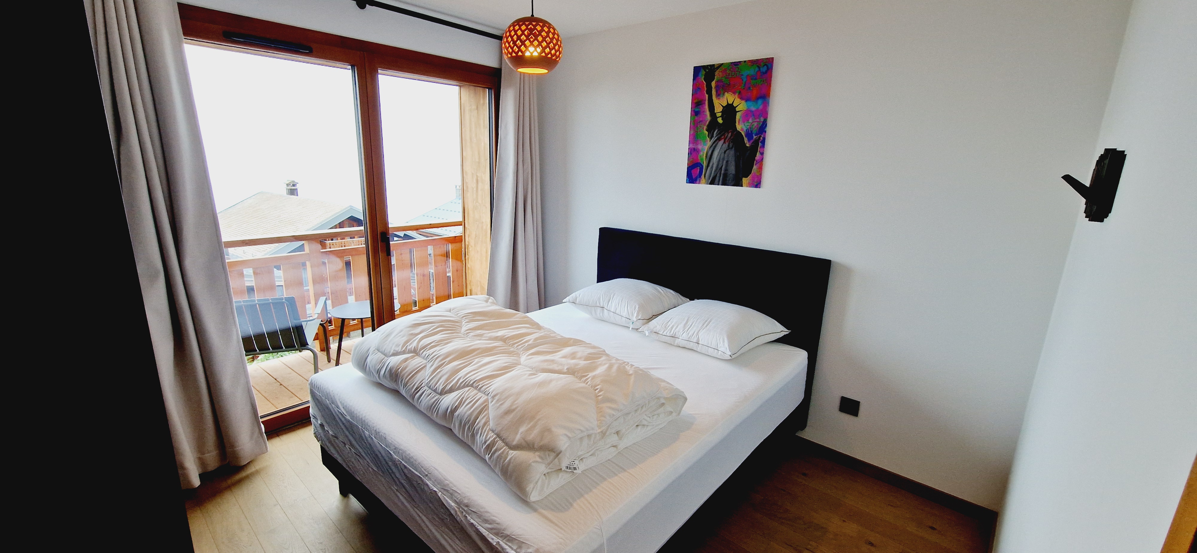 L'appartement neuf, d'une surface de 75m2, se trouve au premier étage et bénéficie d'une exposition ouest offrant une vue imprenable sur les montagnes environnantes. Vous disposerez d'un garage souterrain (accès avec ascenseur à voiture) pour stationner votre véhicule, ainsi que d'un ascenseur pour accéder facilement à votre logement. Un casier à ski individuel avec sèche-chaussures est aussi à votre disposition.