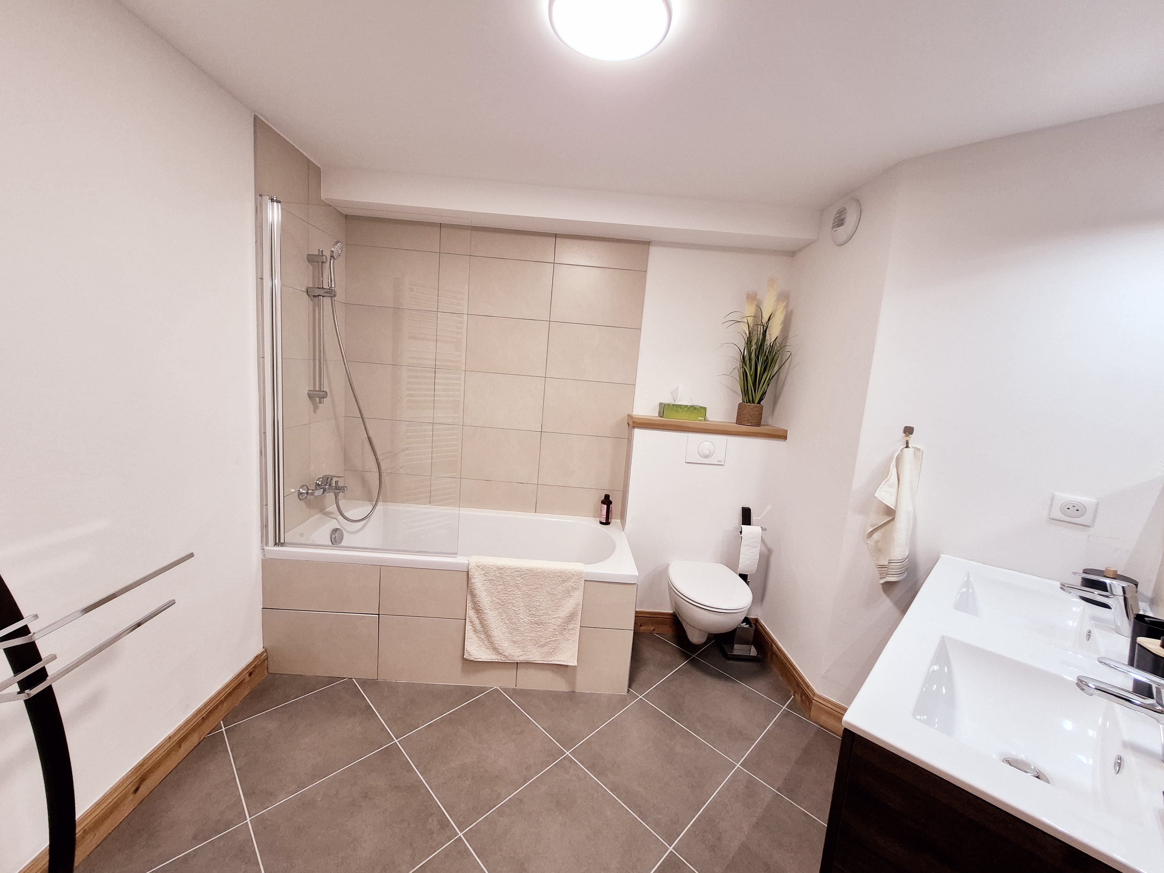 Une cuisine meublée et équipée avec tout le confort nécessaire: appareils à fondue et à raclette, réfrigérateur, four, plaque de cuisson, micro-onde, bouilloire, cafetière électrique, grille-pain, lave-vaisselle, etc...