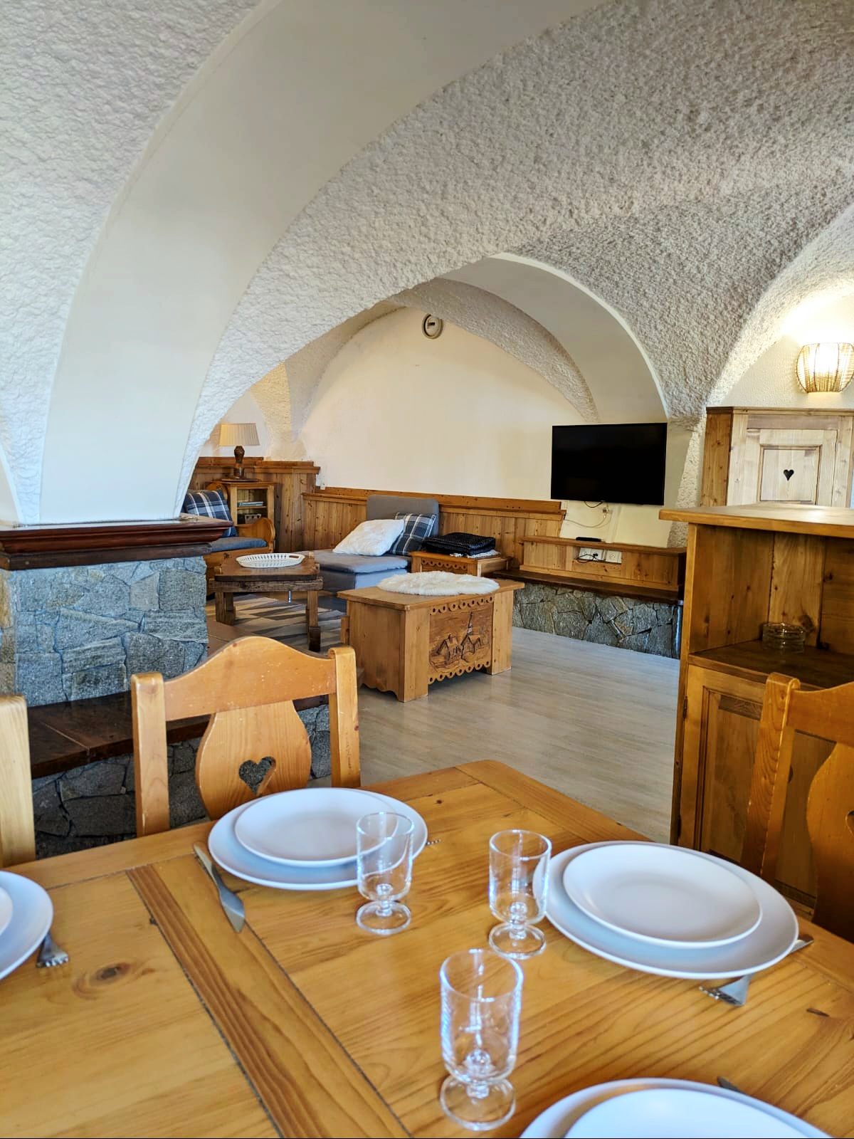 Découvrez ce logement de caractère, situé au rez-de-chaussée d’une maison traditionnelle abritant un restaurant (au-dessus), en plein centre du vieux village de La Plagne Montalbert. Avec ses 96 m², son séjour voûté plein de charme, sa cheminée et son ambiance unique, cet appartement atypique vous promet un séjour inoubliable à la montagne.