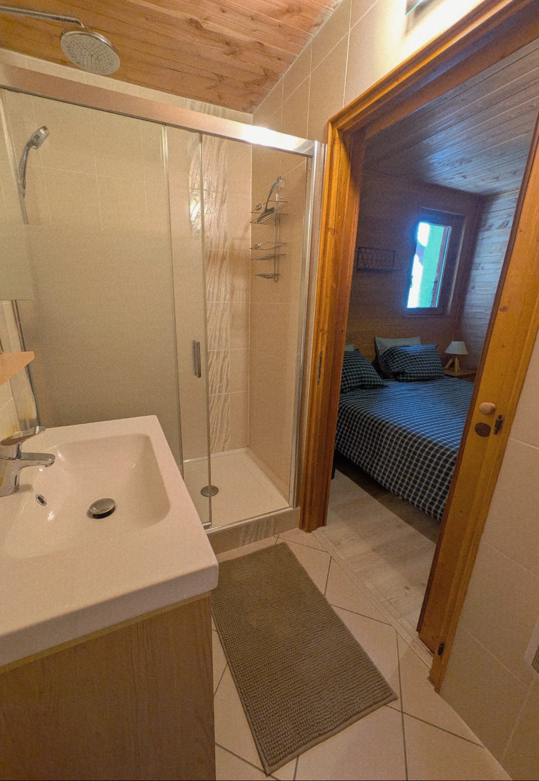 1 suite parentale avec un lit double (160 cm), salle de douche privative et WC