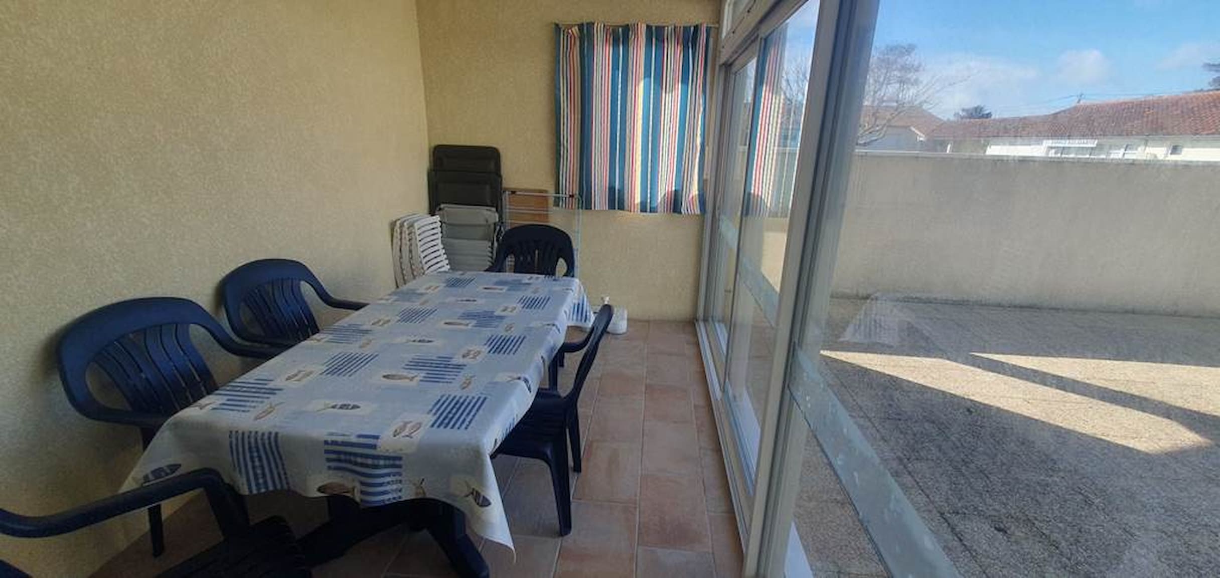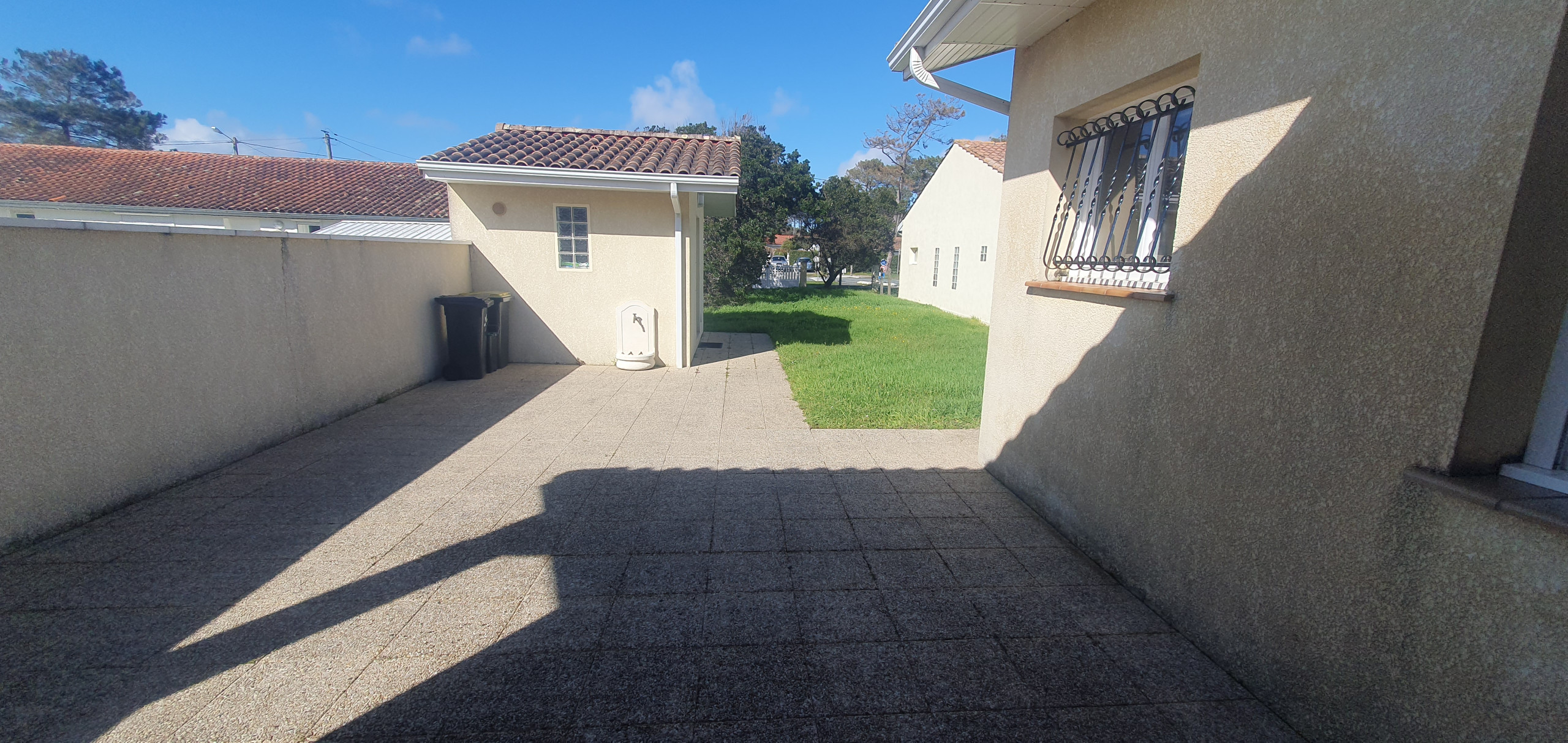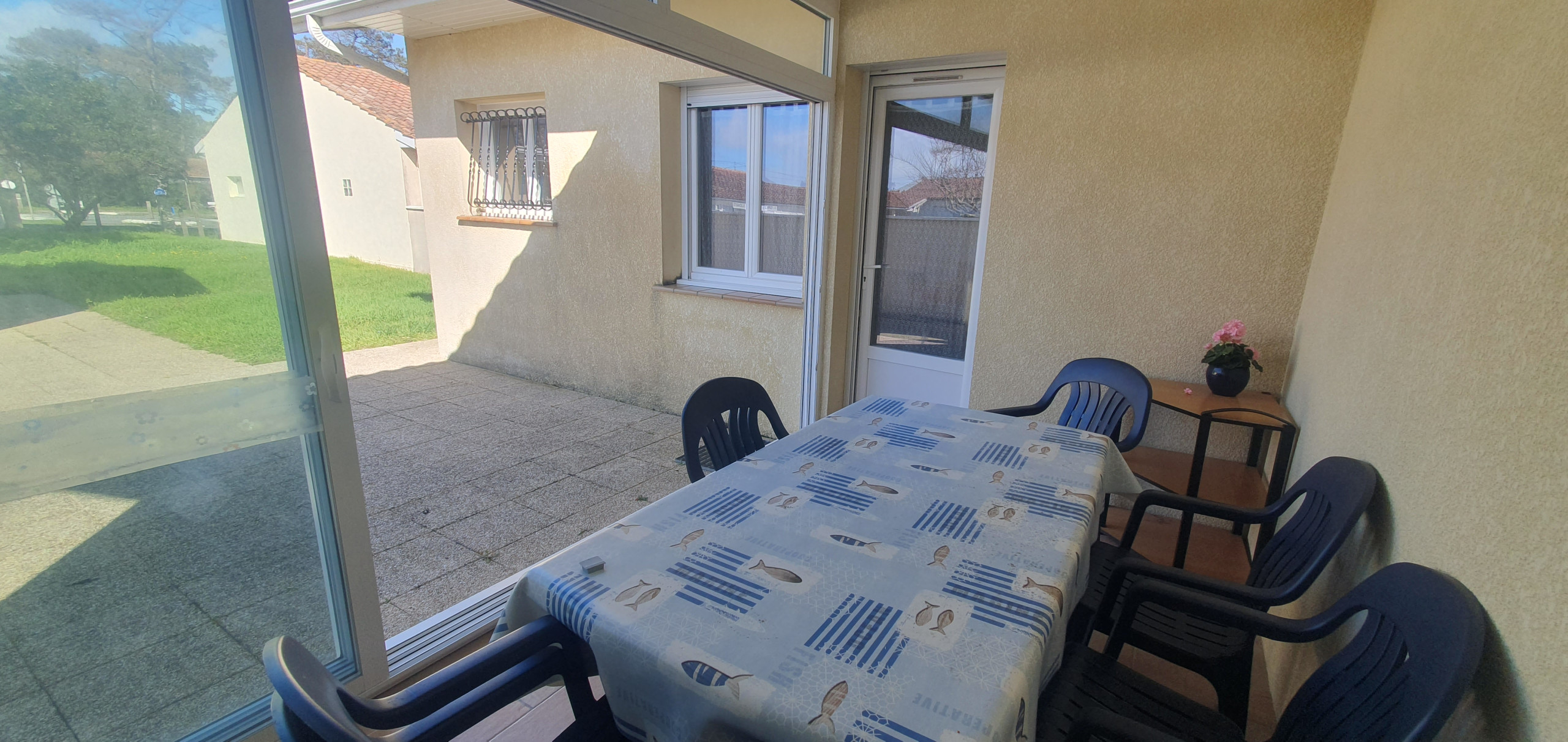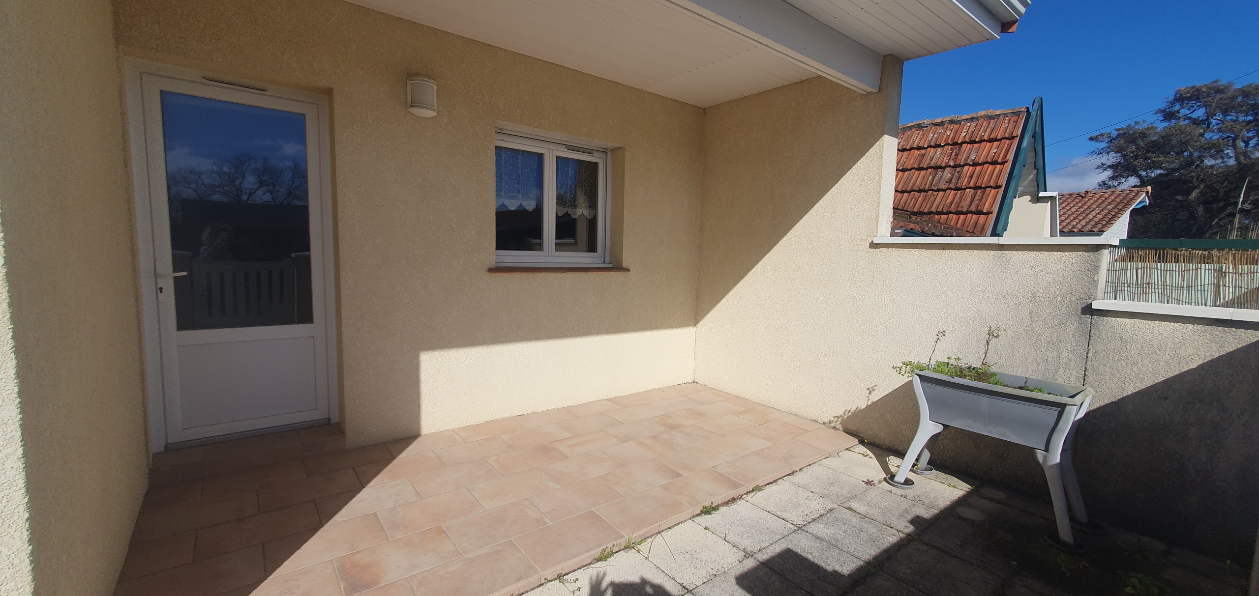 Terrasse ensoleillée pour des repas en plein air.