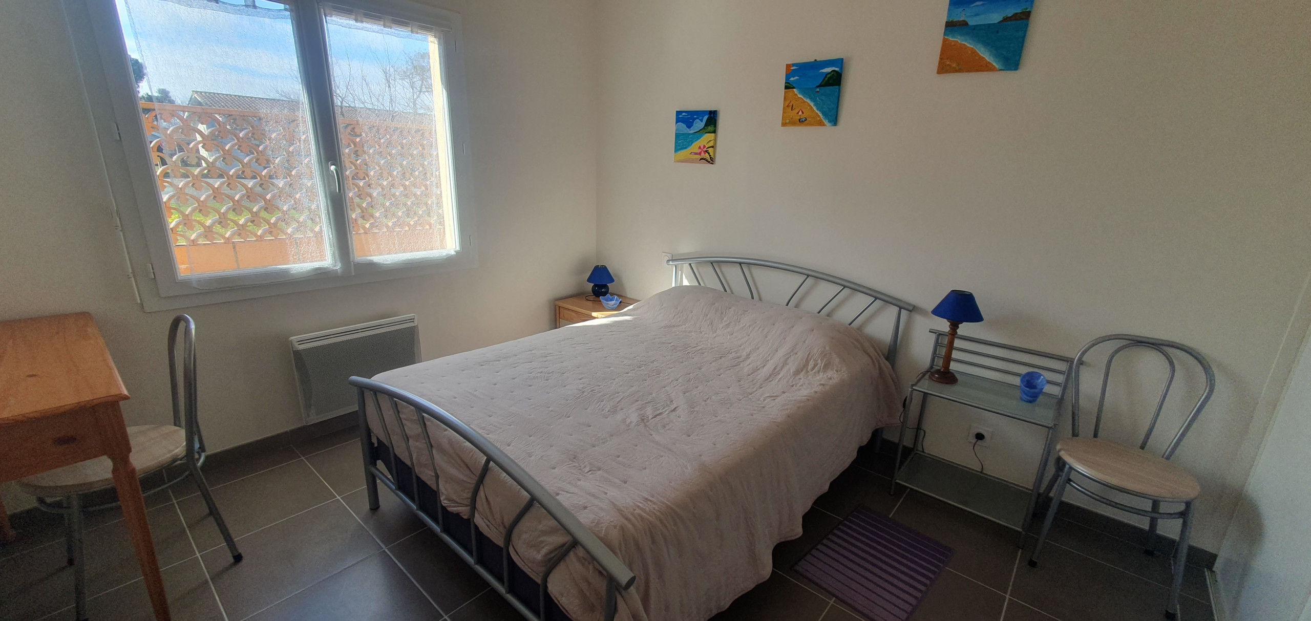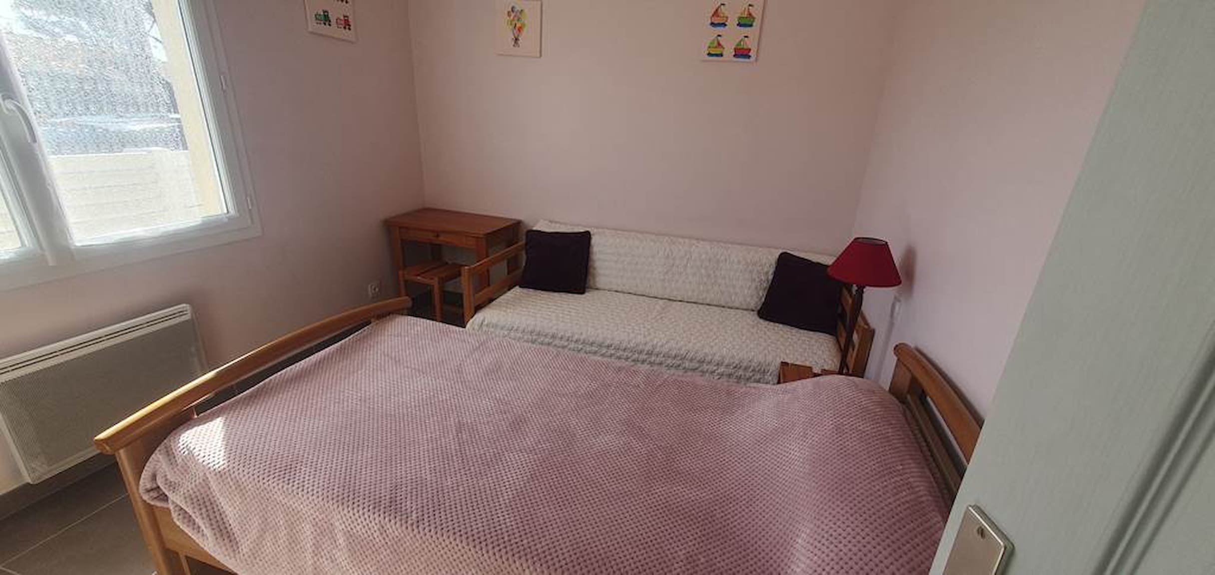 Deux chambres confortables : une avec un lit double en 140 cm et une autre avec un lit double en 140 cm et un lit simple en 90 cm.