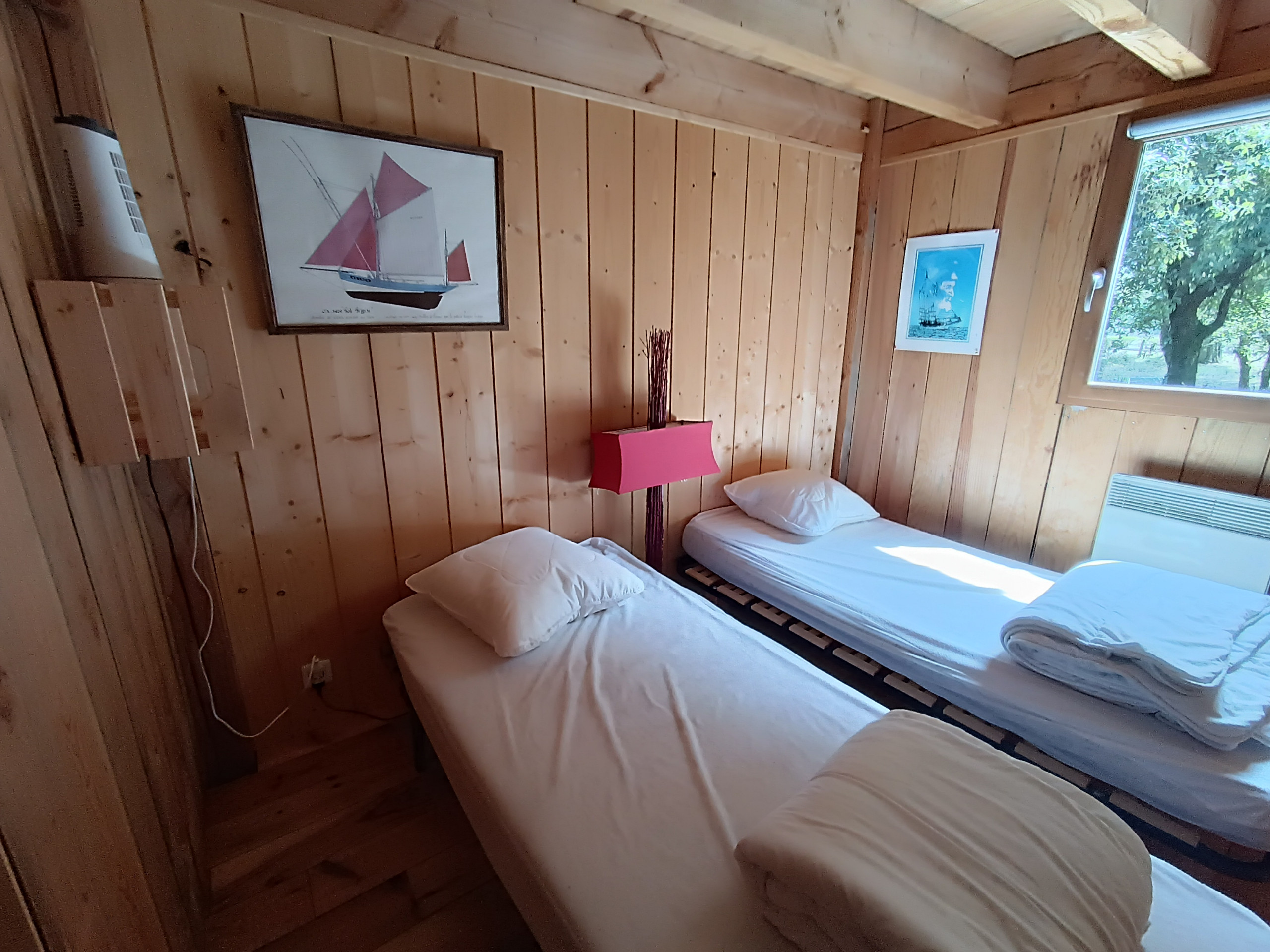 Patio agréable avec mobilier de terrasse donnant accès à l'espace nuit composé en RDC d'une entrée, une chambre avec un lit en 140, une chambre avec 2 lits en 90, une salle d'eau. A l'étage une grande chambre avec un couchage en 140