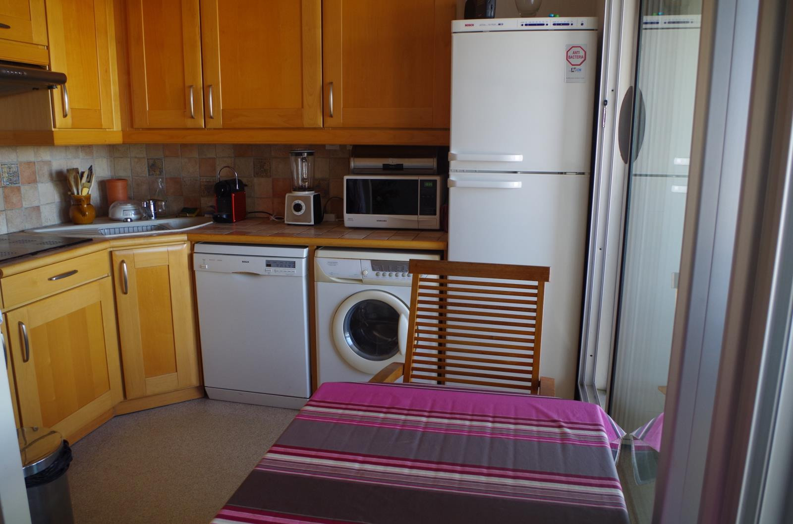 APPARTEMENT situé dans la Résidence Marine, au 2ème étage avec ascenseur, appartement très agréable et confortable, composé d'un salon avec TV et lecteur DVD, donnant sur loggia vue mer, jolie cuisine indépendante avec plaques vitrocéramiques, réfrigérateur/congélateur, four, micro ondes, lave vaisselle, lave linge/sèche linge, barbecue électrique, 1 chambre avec 1 lit en 140 et 1 chambre avec 2 lits gigognes en 80, salle d'eau, WC indépendant, salon de jardin, 2 transats