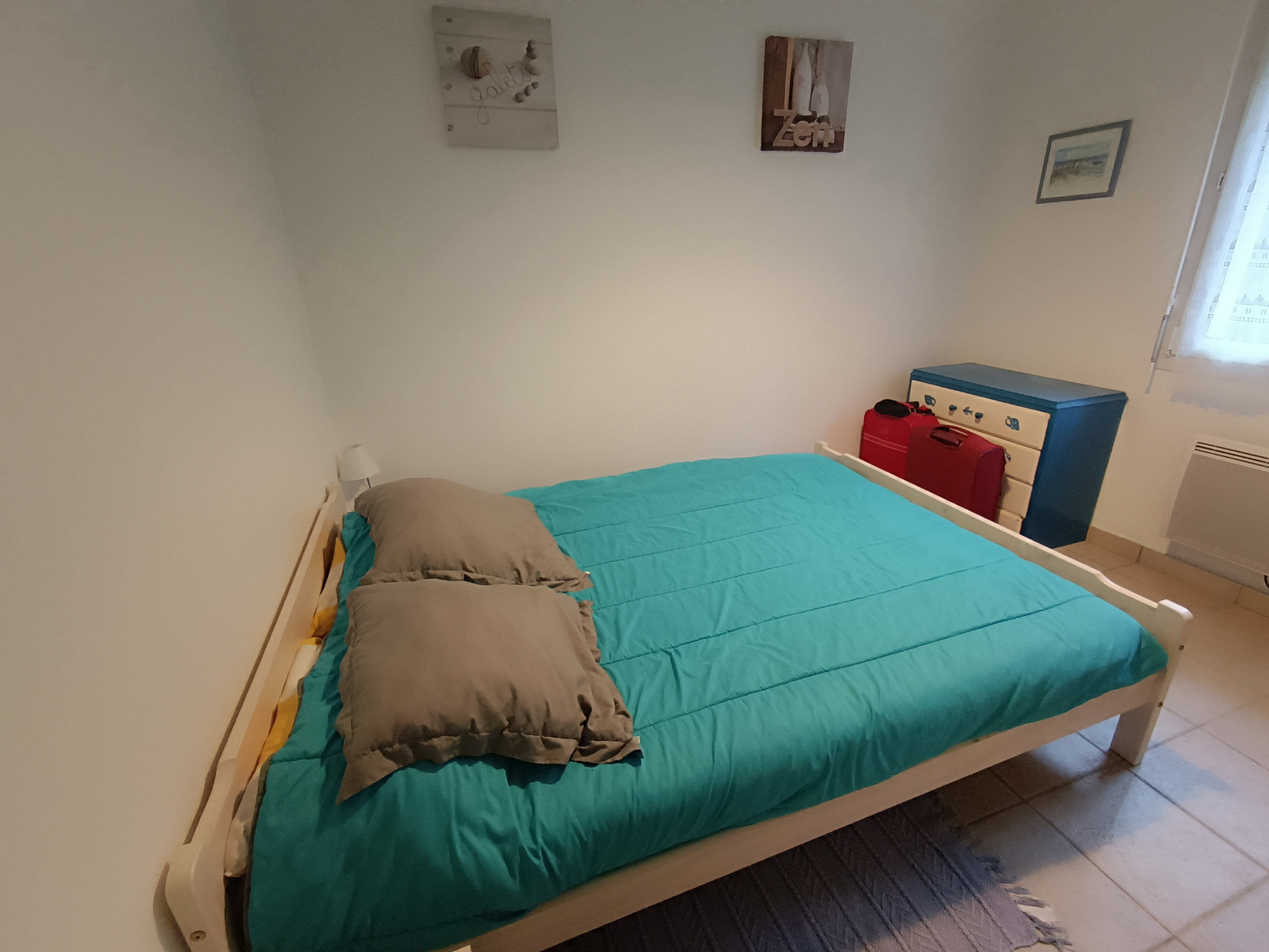 Cette villa située dans une petite rue calme mais proche centre et plage, est composée d'un séjour avec TV écran plat, donnant sur terrasse avec salon de jardin, une cuisine ouverte avec réfrigérateur/congélateur, four et plaques électriques, micro-ondes, lave vaisselle, un cellier attenant à la cuisine avec lave linge, deux chambres avec chacune 1 lit en 140, salle d'eau, WC indépendant,