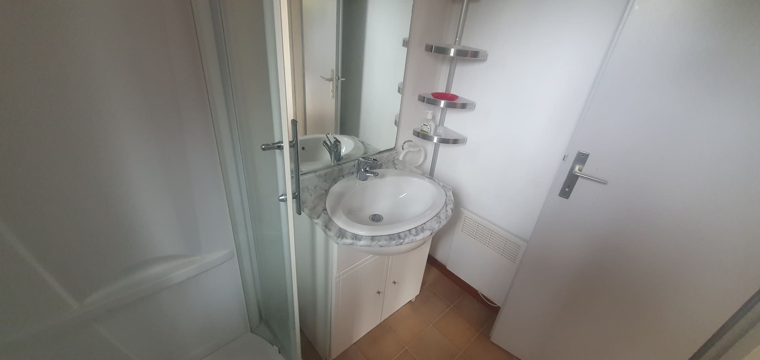 Salle d'eau : Une salle d'eau fonctionnelle pour votre confort, équipée d'une douche spacieuse.