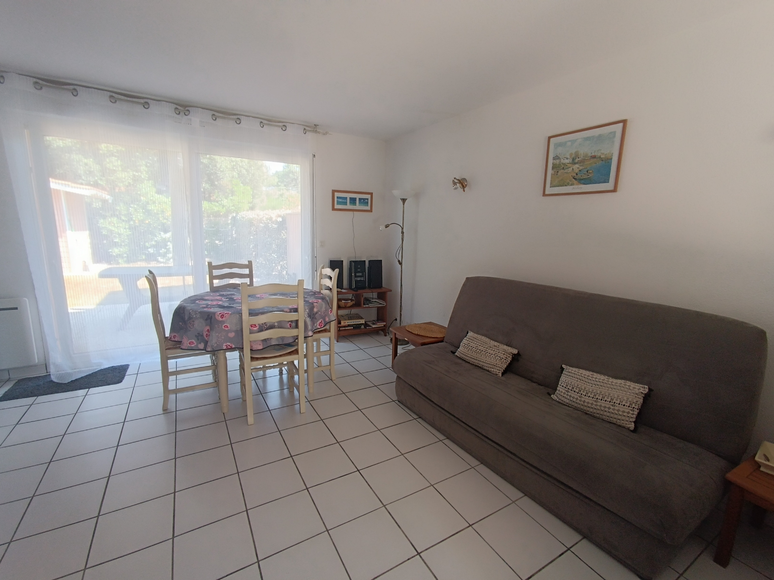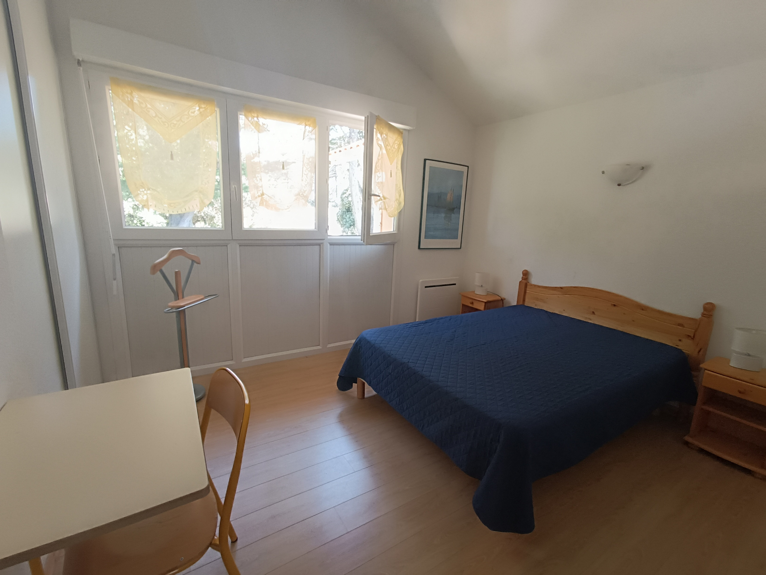 2 places de parking, salon de jardin avec parasol, barbecue, transats, chaises longues.