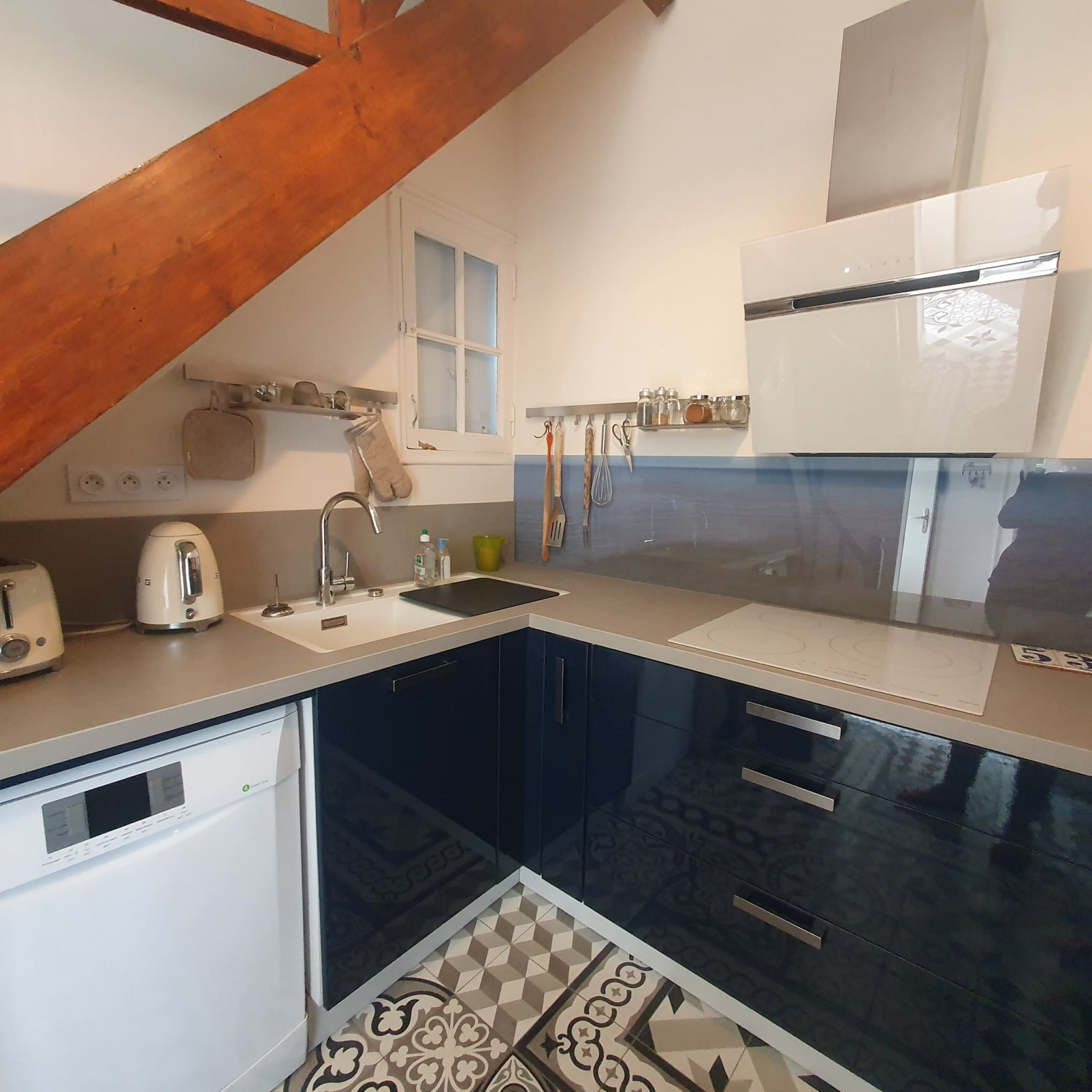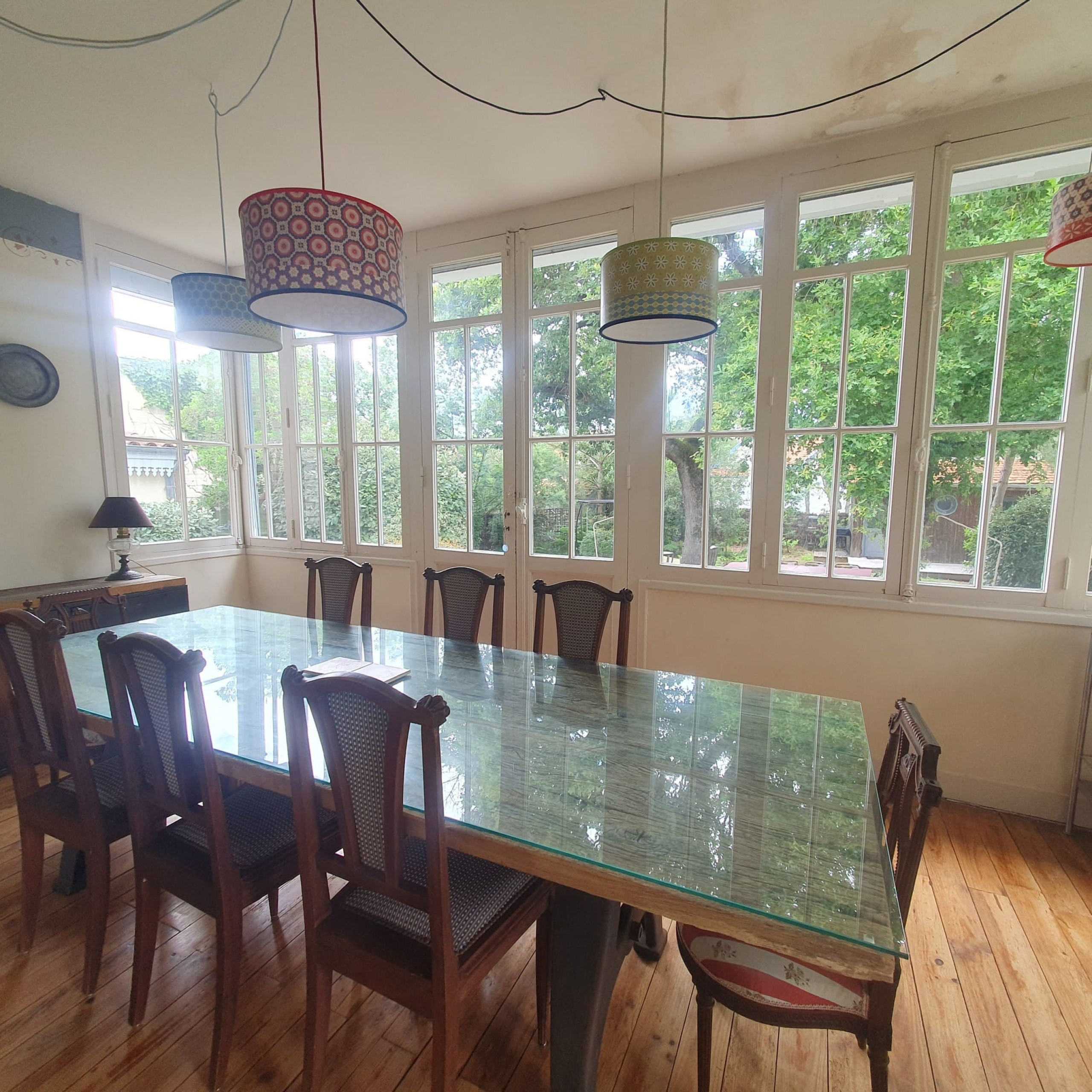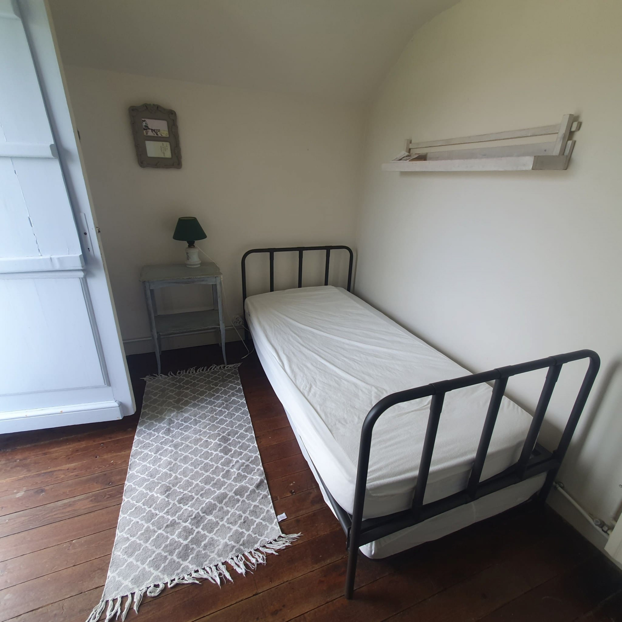 A l'étage, vous trouverez une petite chambre confortable avec un lit en 90 cm, idéale pour les enfants ou les invités. Au rez-de-chaussée, la maison dispose d'une cuisine entièrement équipée où vous pourrez préparer de délicieux repas. La salle à manger, dotée d'une magnifique verrière donnant sur le jardin, offre un espace convivial pour partager des repas en famille. Le grand salon vous invite à la détente avec son atmosphère chaleureuse. Une salle de bain avec WC est également disponible au rez-de-chaussée.