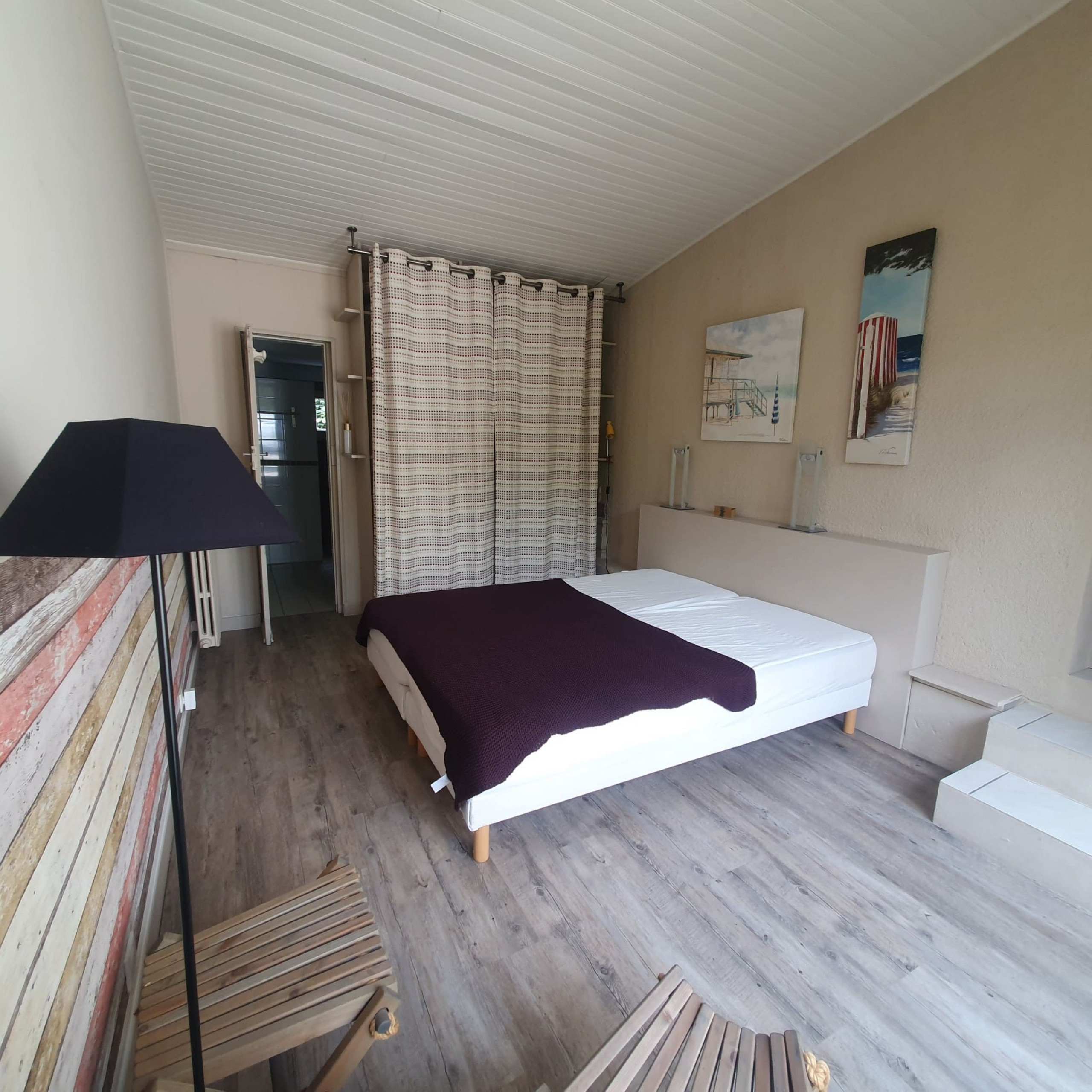 La maison comprend deux chambres avec des lits en 160 cm, offrant un confort optimal pour se reposer après une journée bien remplie. La troisième chambre est équipée de lits superposés en 90 cm, parfaits pour les enfants. Enfin, la suite parentale dispose de deux lits de 90 cm collés et d'une salle d'eau avec WC, offrant intimité et tranquillité.