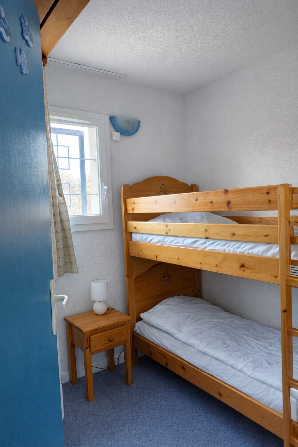 Elle est composée d'un séjour avec coin cuisine équipée, trois chambres avec 1 lit 140, 2 lits superposés en 90 et 2 autres lits 90, une salle d'eau, une salle de bains, et deux WC.