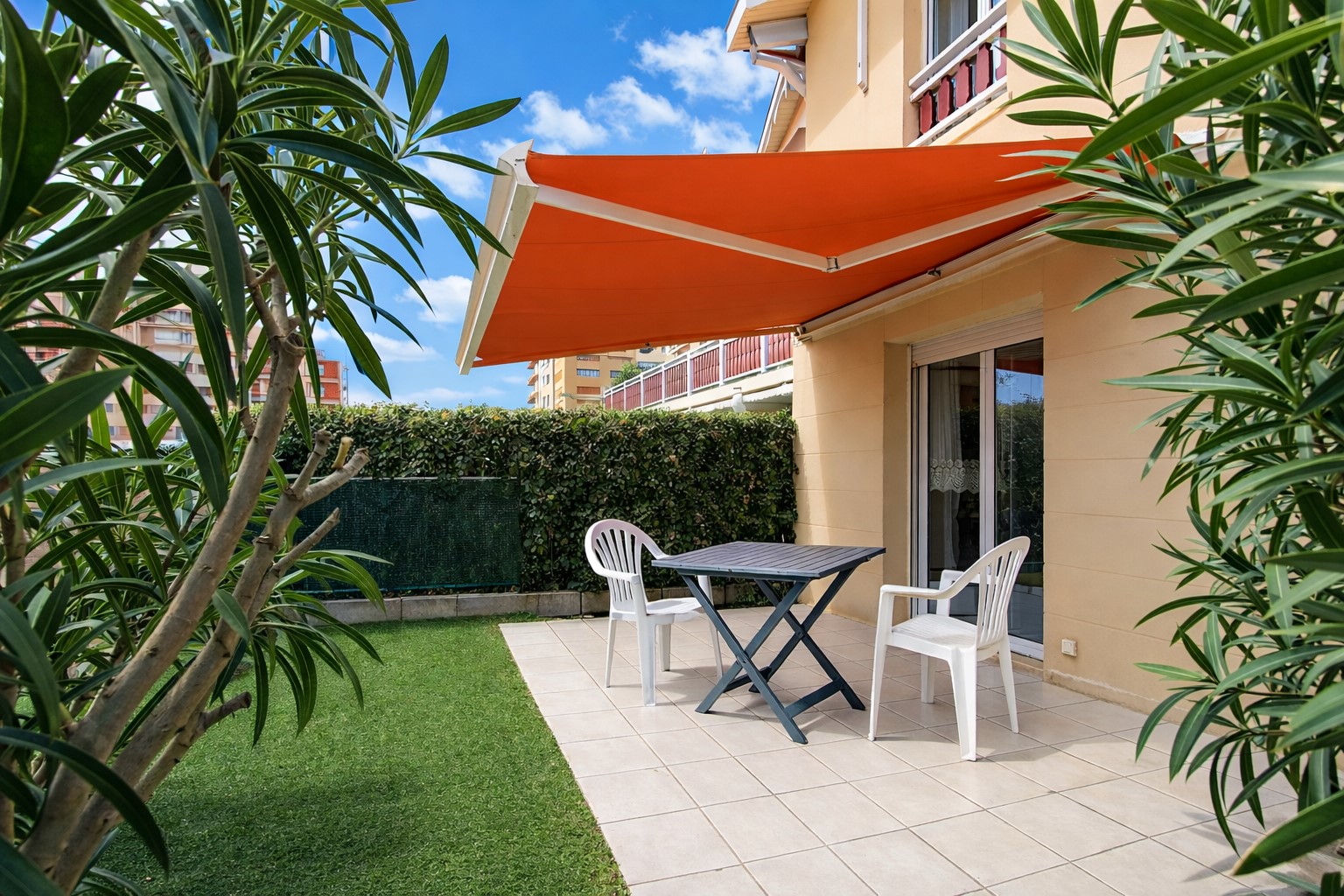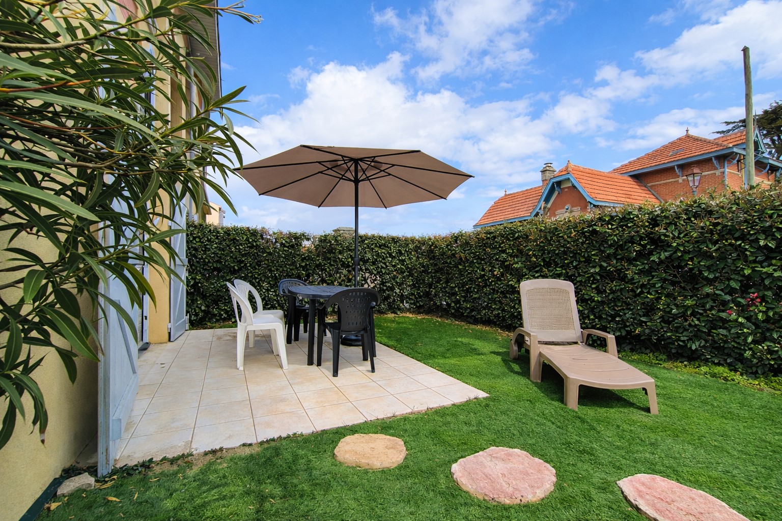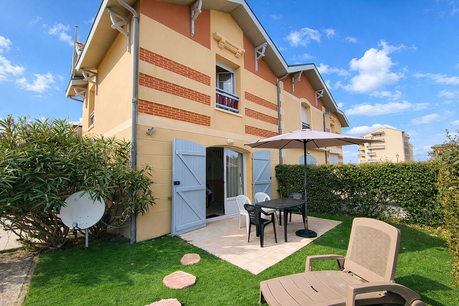 Vous profiterez d’un extérieur privé avec terrasse, transats et coin repas, idéal pour savourer les longues journées d’été après la plage.