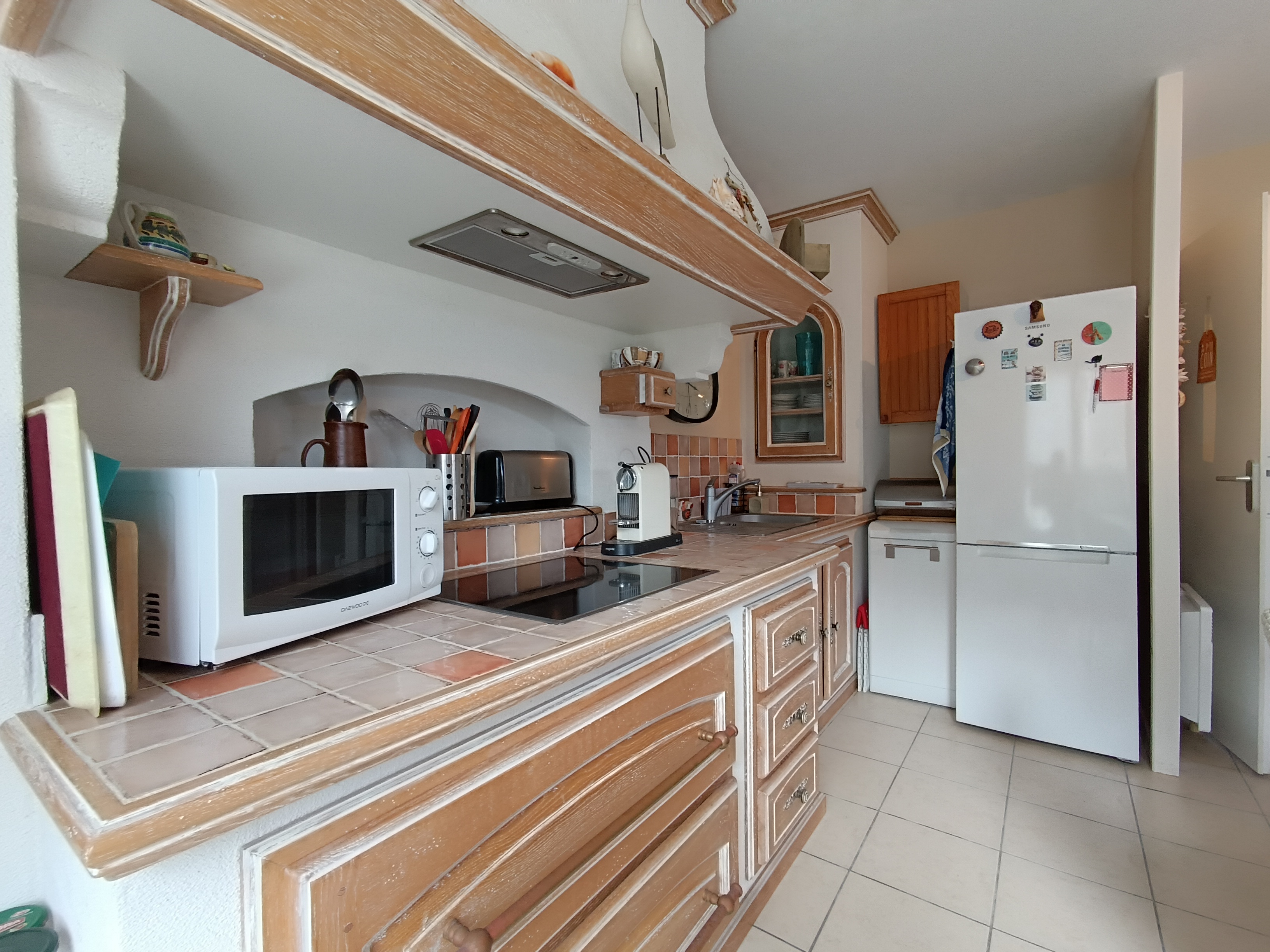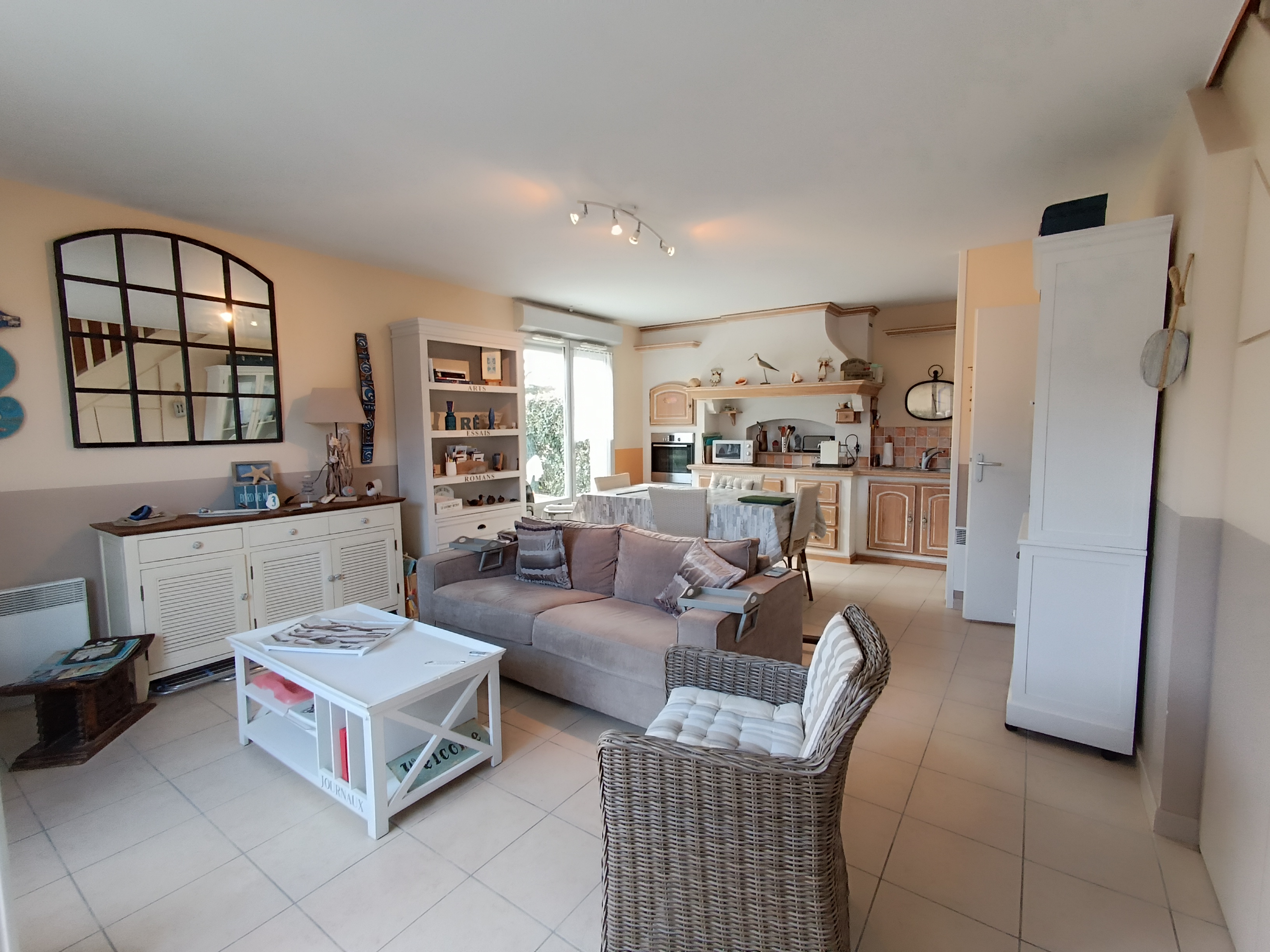 - Une entrée donnant sur une cuisine ouverte toute équipée et d'un salon et salle à manger.