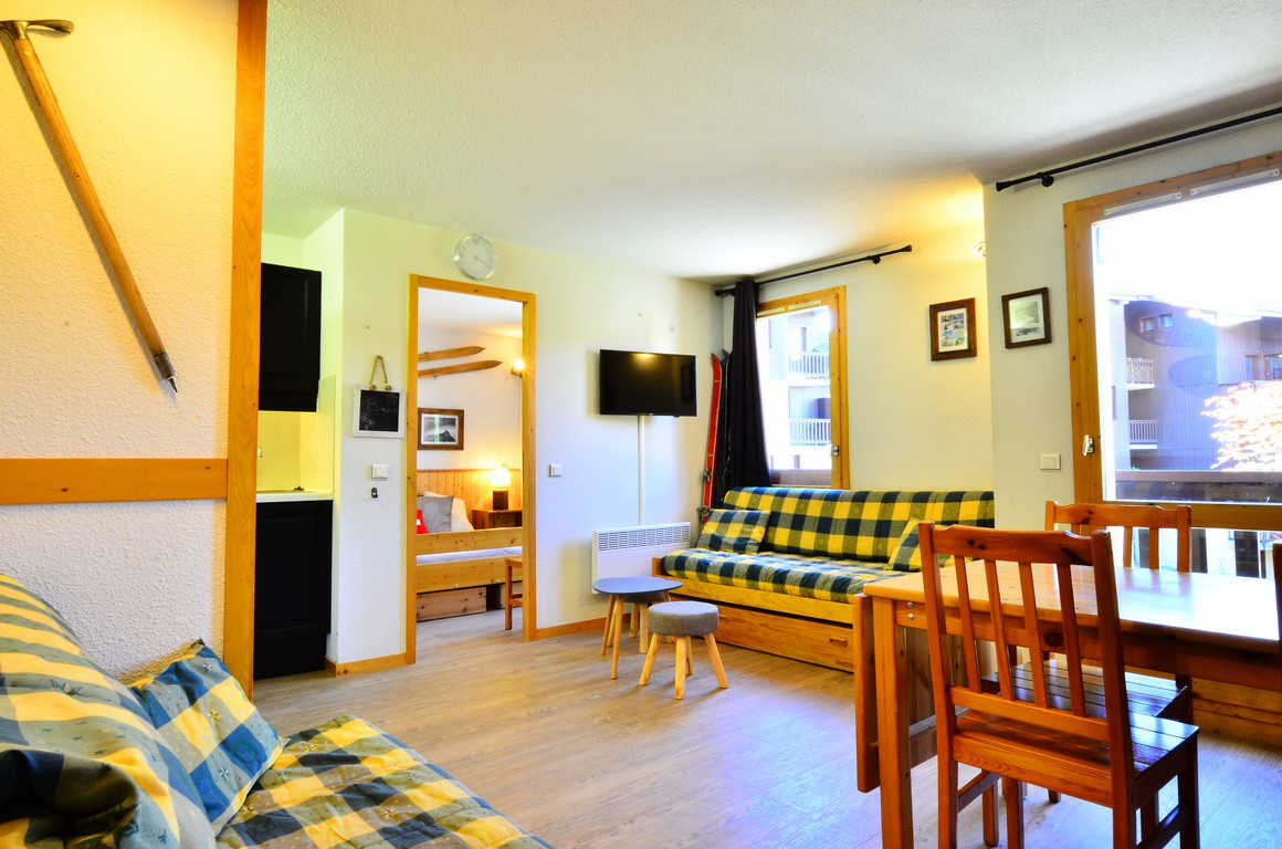 Appartement 2 pièces d'une surface d'environ 36m², équipé pour 5 personnes, exposé ouest avec balcon au 1er étage.