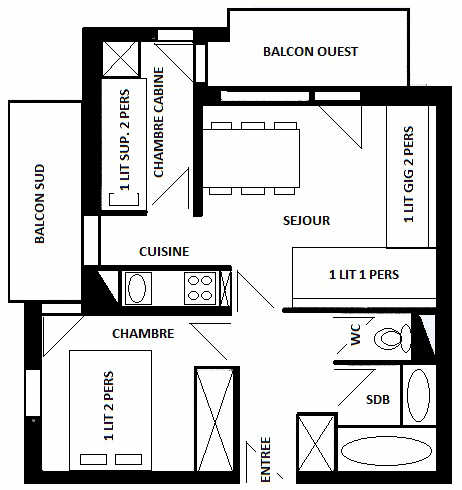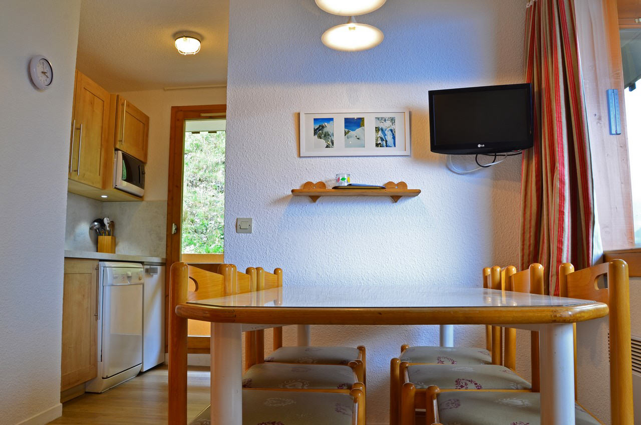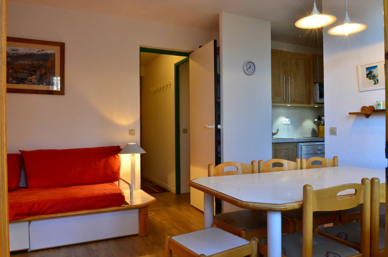 Appartement 2 pièces + cabine pour 6 personnes, récemment rénové, d'environ 34m², double exposition sud et ouest avec 2 balcons, côté pistes et station au 6ème étage.