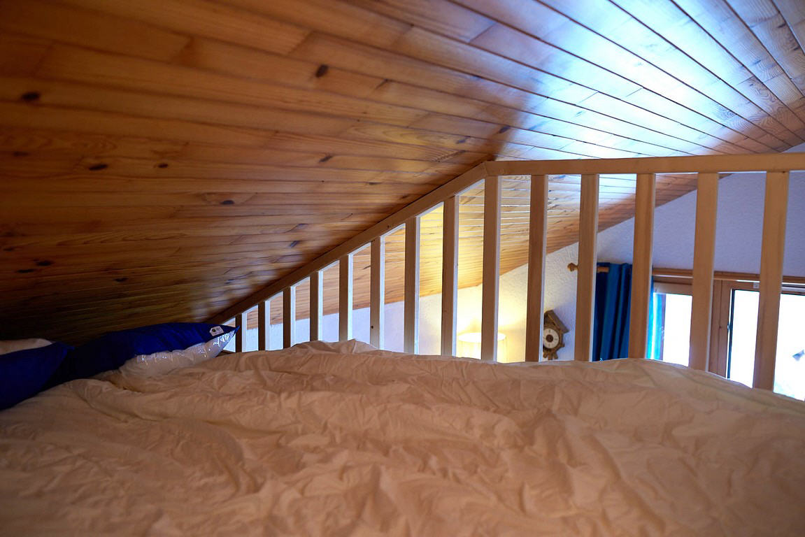 Mezzanine (ouverte sur séjour) : 1 lit double (140).