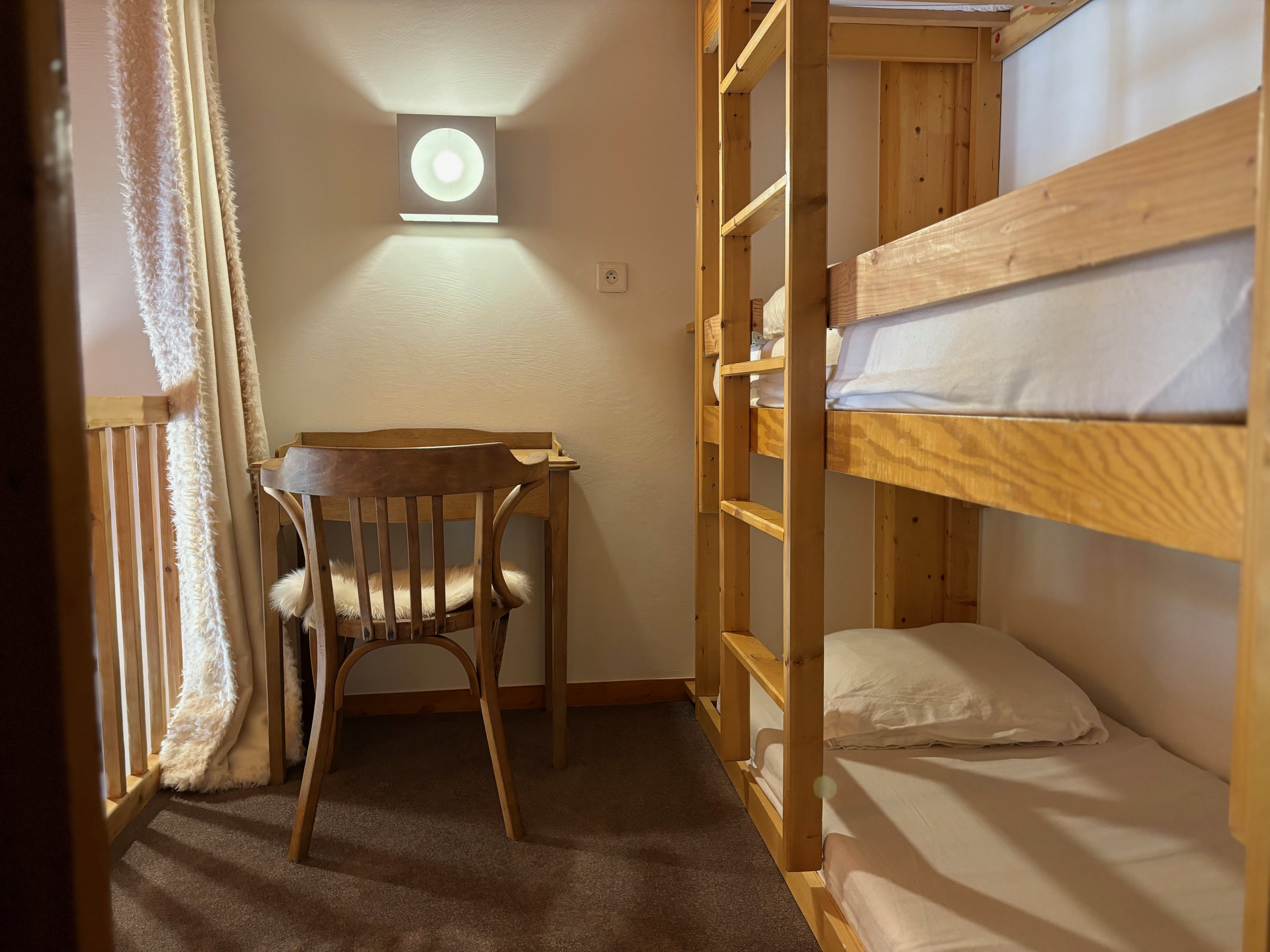 Mezzanine (ouverte sur séjour) : 2 lits superposés.
