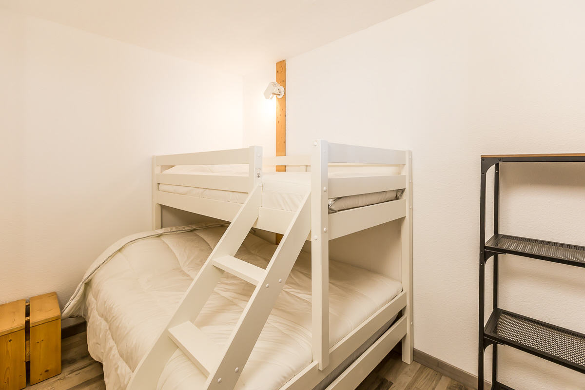 Chambre : 2 lits superposés : 1 lit double dessous (140) et 1 lit simple dessus (90).