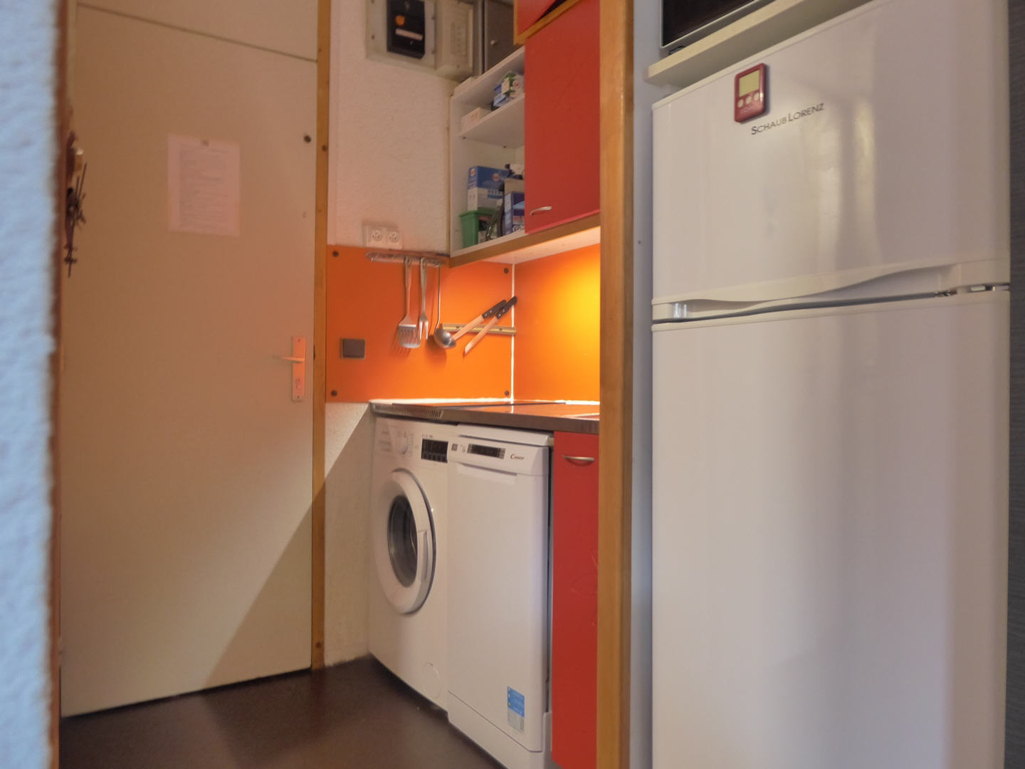 Cuisine dans l'entrée : 2 plaques vitrocéramiques, lave-vaisselle, réfrigérateur avec congélateur, four mixte micro-ondes, bouilloire, grille pain, cafetière NESPRESSO, service à fondue, appareil à raclette et lave-linge.