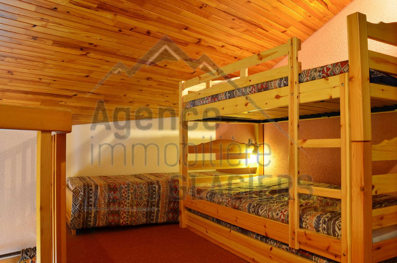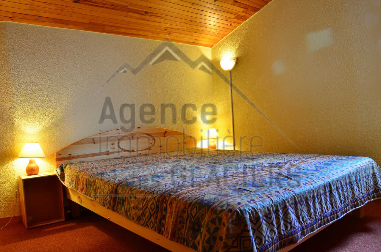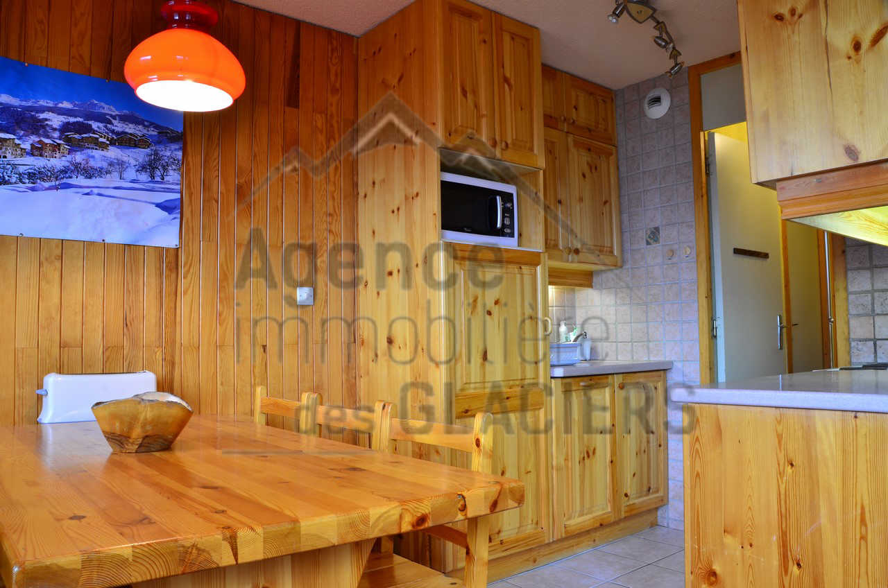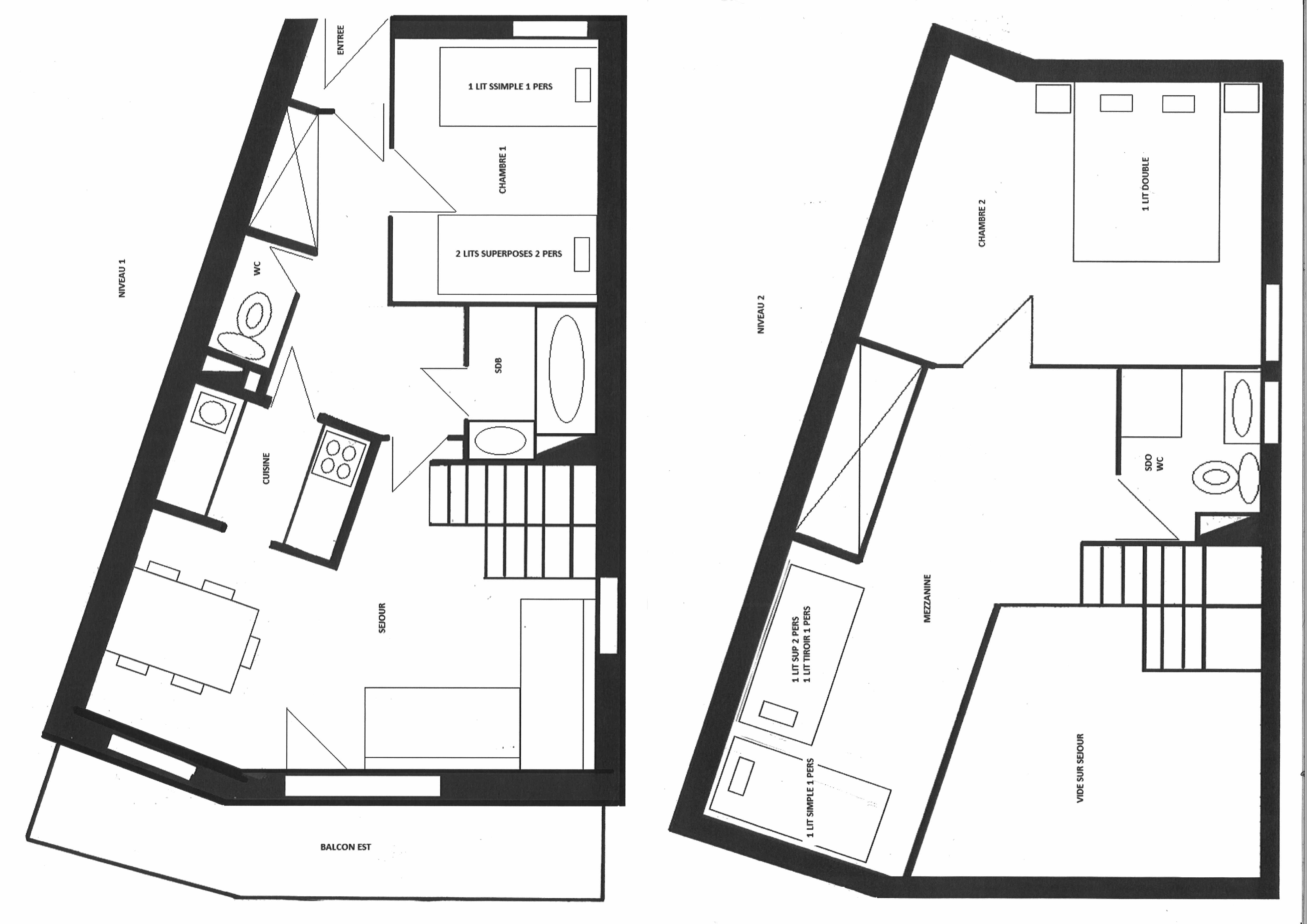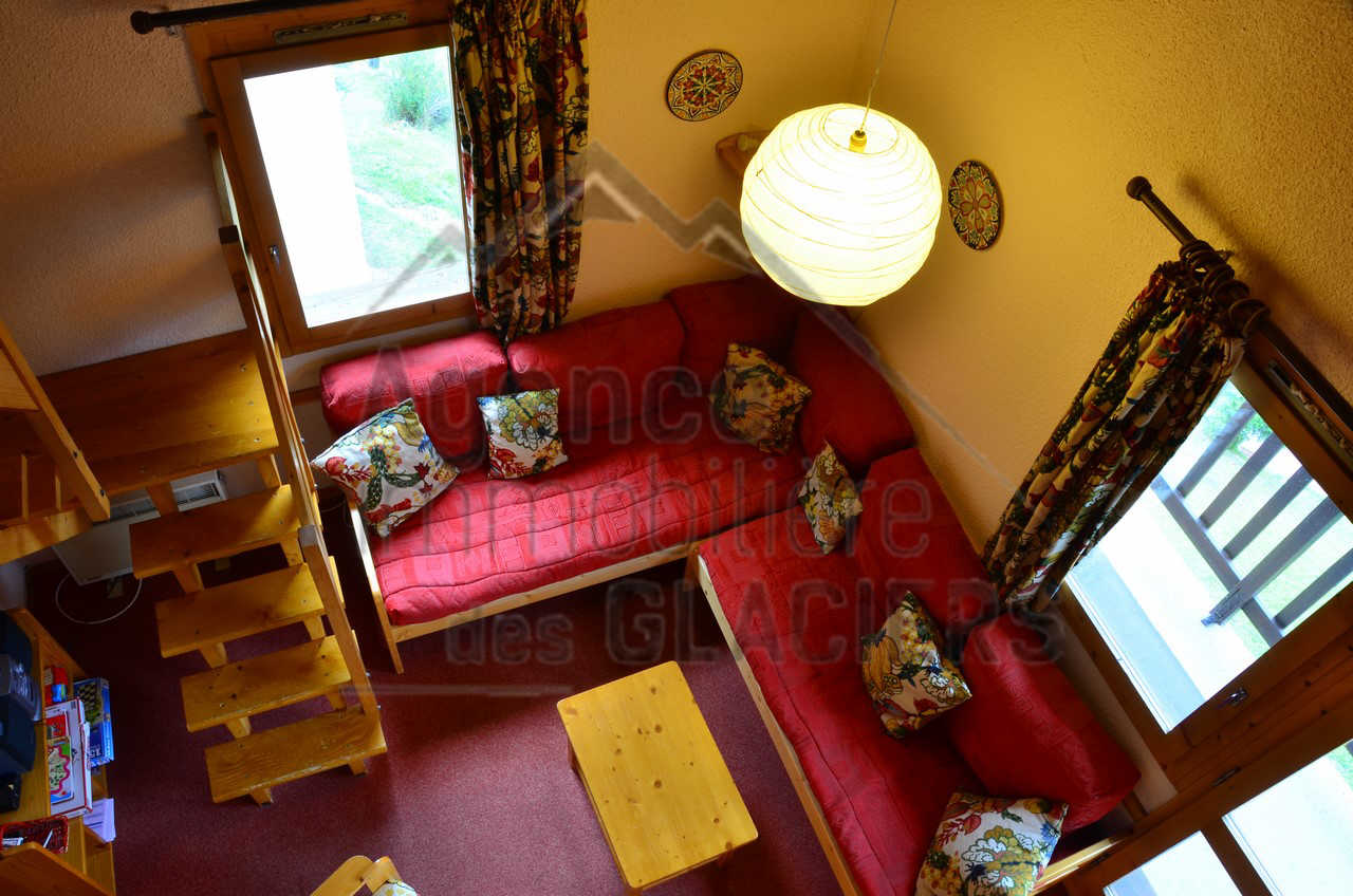 Appartement 3 pièces + mezzanine en duplex équipé pour 8 personnes d'environ 60 m², exposé nord-est avec balcon, côté vallée et Mont-Blanc au 1er étage côté entrée et 2ème étage côté balcon.