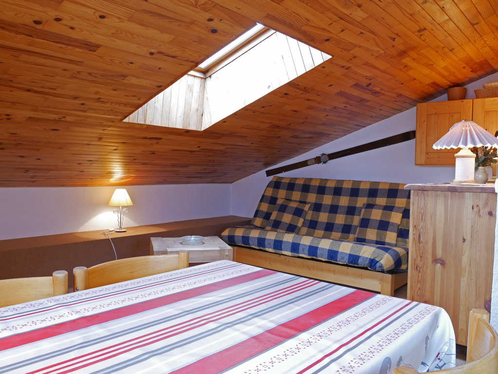 Un appartement 2 pièces mansardé d'une surface d'environ 39m² (dont 18m² inférieur à 1m80), entièrement rénové, équipé pour 5 personnes, exposé ouest avec balcon au 4ème demi-niveau.