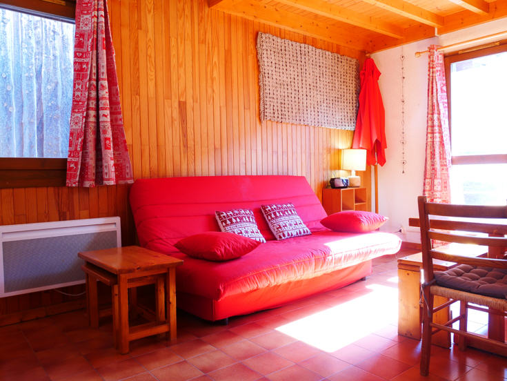Séjour : 1 canapé convertible (clic-clac) pour 2 personnes (140), TV écran plat.