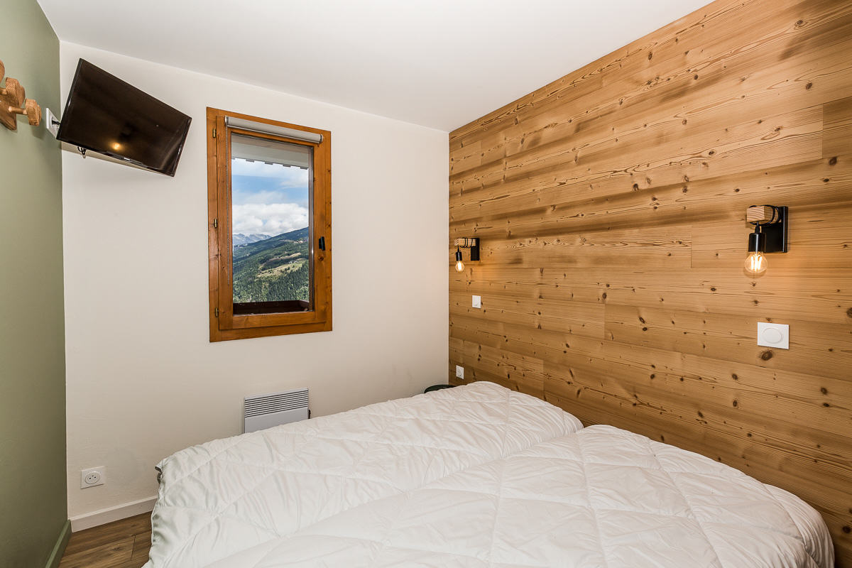 Chambre 1 : 2 lits simples et TV écran plat.