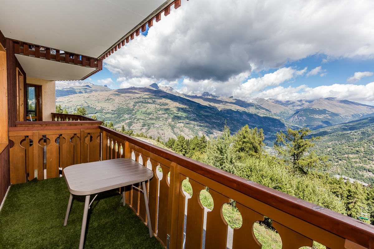 Appartement 2 pièces, entièrement rénové, équipé pour 4 personnes d'environ 28 m², exposé nord-ouest avec balcon, vue vallée et Mont Blanc, au 3ème étage.