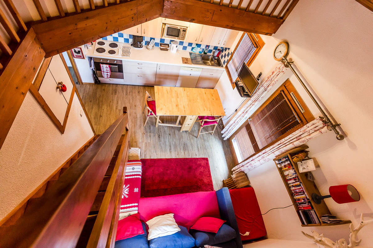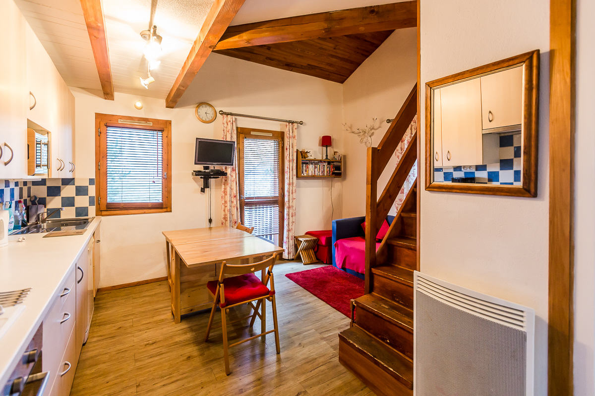 Appartement 3 pièces en duplex en bon état d'une surface d'environ 41m², équipé pour 6 personnes, exposé sud-ouest/nord-ouest avec balcon au 3ème demi-niveau.