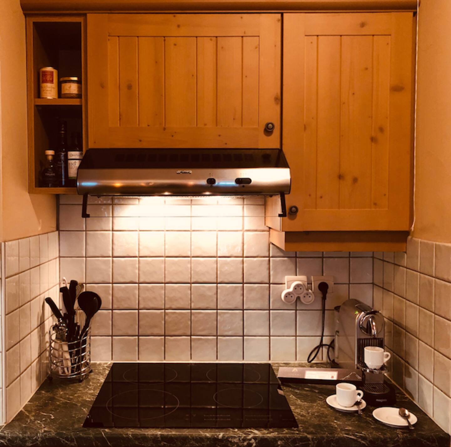 La cuisine équipée comprend une machine Nespresso, un four, 4 plaques à induction et un réfrigérateur Smeg, etc..