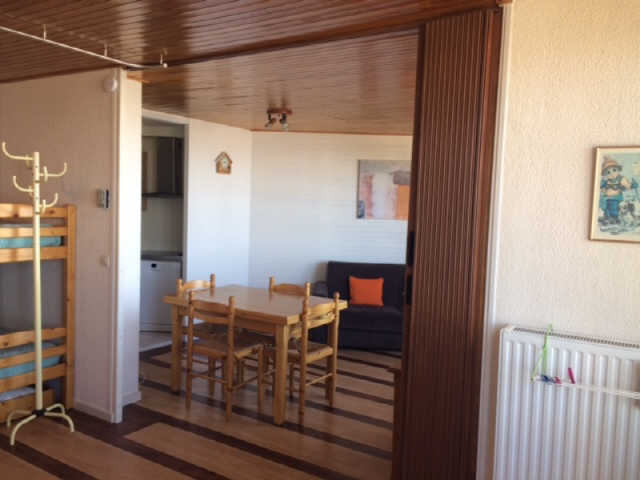 Un canapé 2 places dans le séjour, dans la chambre séparée par une porte coulissante un canapé 2 places et dans un coin cabine vraiment fermé un ensemble de lits superposés