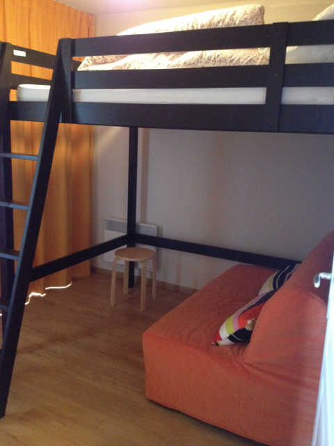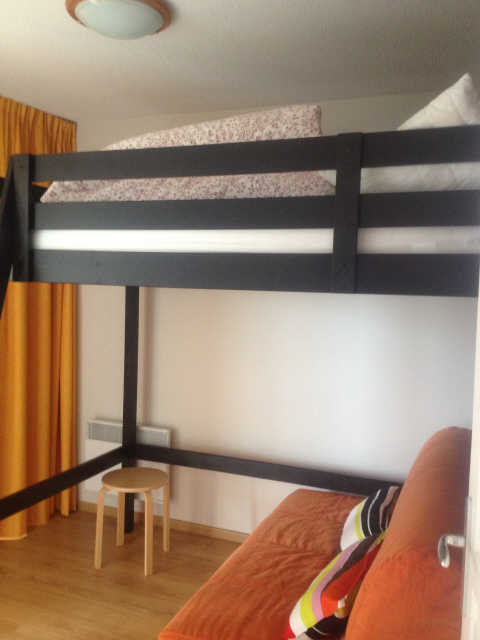 Répartition couchages : chambre 1 avec un lit 2 places, chambre 2 avec un BZ 2 couchages + un lit 2 places mezzanine, un coin cabine avec un ensemble de lits superposés et dans le séjour : un canapé 2 places