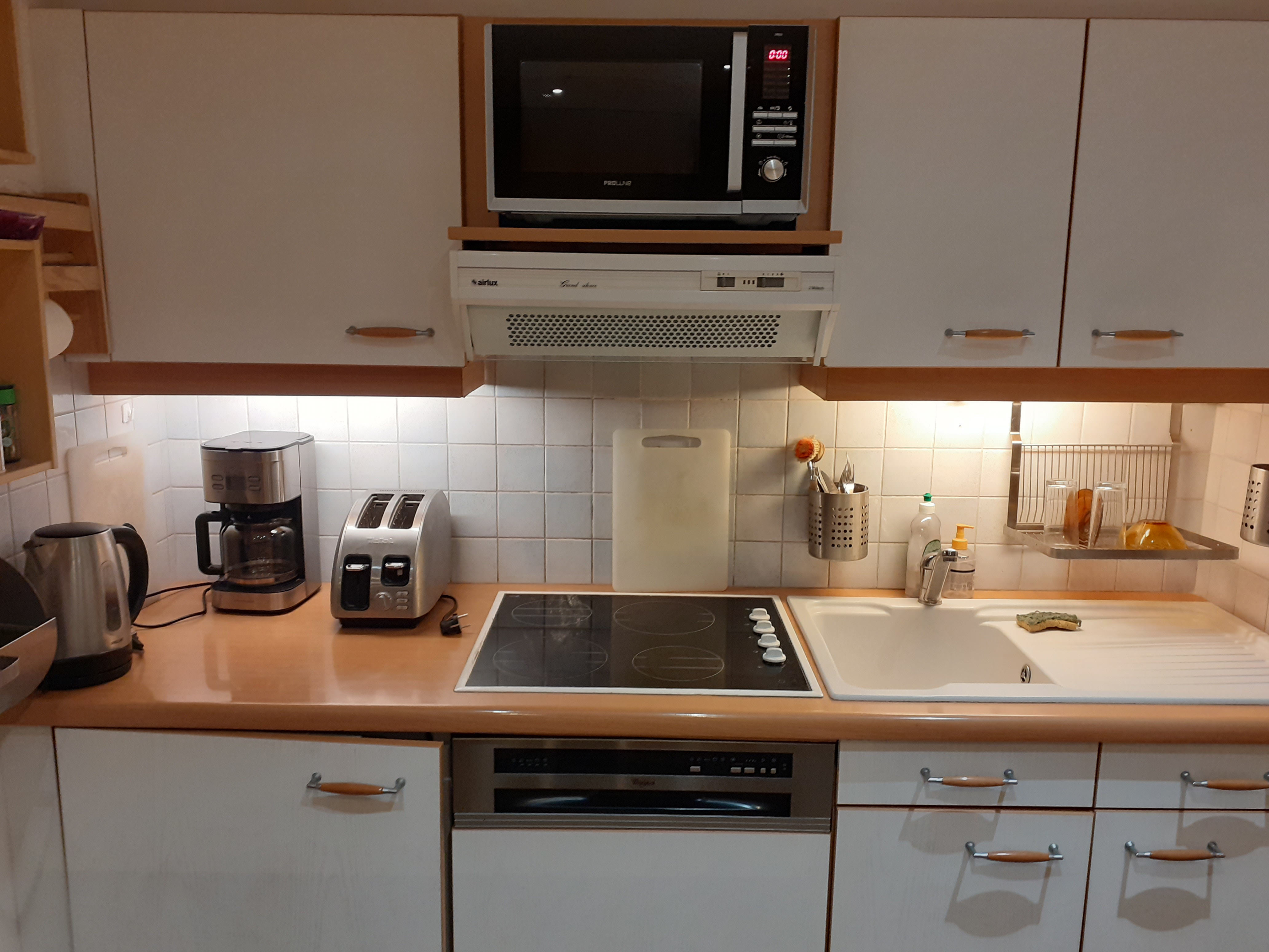 Four micro ondes avec grill, grille pain, bouilloire, cafetière à filtre