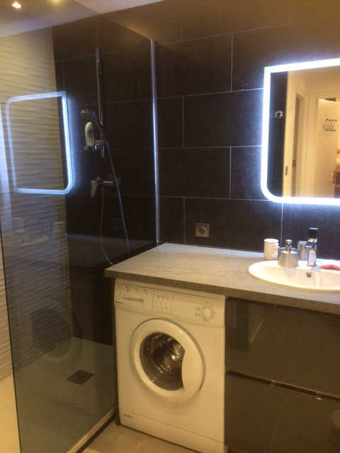 Appartement très bien équipé : lave vaisselle, 2 petits frigidaires avec freezer, un four micro-ondes/Grill, un four électrique, une table de cuisson vitro céramique, une hotte, machine Nespresso, blender chauffant ,grille pain,cafetière,bouilloire